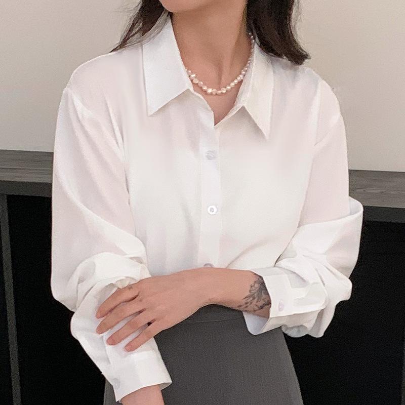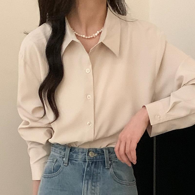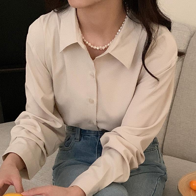 Премиальная нишевая рубашка однотонного цвета для женщин на весну-осень, свободная, универсальная, скрывающая недостатки фигуры, стройнящая, профессиональный топ, блузки и рубашки