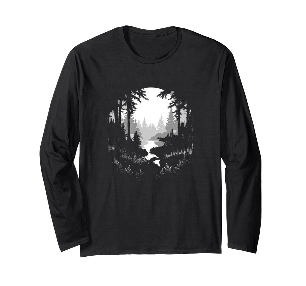 Ночная природа Дикая природа Деревья на открытом воздухе имеет простую, не содержащую текста графику, которую понравятся любителям природы. На картине изображен таинственный сосновый лес, освещенный луной, и текущий ручей.. Идеальный натуральный подарок на день рождения, Рождество или во время вашей следующей поездки.