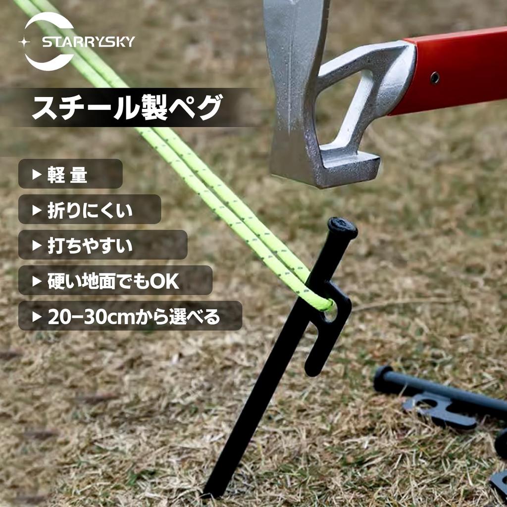 [Необходимые вещи для отдыха на природе! Стальные колышки 30 см] Эти высокопрочные стальные колышки необходимы для установки палаток и брезента для кемпинга и барбекю.. Толкающая часть толстая, а кончик имеет форму тонкого гвоздя, что позволяет легко и плавно входить в землю.. [Разработано для легкого забивания] Верхняя часть молотка сделана более широкой, что позволяет легче передавать усилие на штифты, обеспечивая стабильное забивание.. [Наконечник тонкий, как гвоздь] Наконечник колышка тонкий, как гвоздь, поэтому сопротивление земле меньше, и его можно плавно вбить в твердую почву.. [Универсальные и удобные стальные колышки] Их можно использовать не только для крепления палаток и брезента, но и для крепления сидений и веревок на открытом воздухе.. Надежная вещь, которая пригодится во время любого активного отдыха.