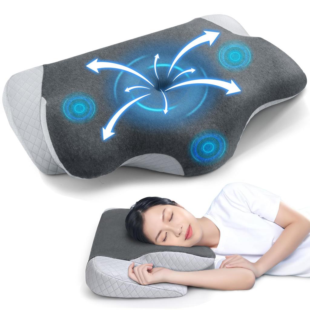 [Новый дизайн и вогнутая полая конструкция для ушей и затылка] Конструкция с центральным углублением стабилизирует голову, снижает нагрузку на нее и обеспечивает сон без давления.. Вогнутая конструкция по обеим сторонам снижает давление на виски и уши, даже при сне на боку, и прилегает к телу, чтобы выпрямить кости.. Арочная форма повторяет изгиб ваших плеч и спины, позволяя вам естественным образом положить на нее голову, обеспечивая комфорт для шеи и плеч.