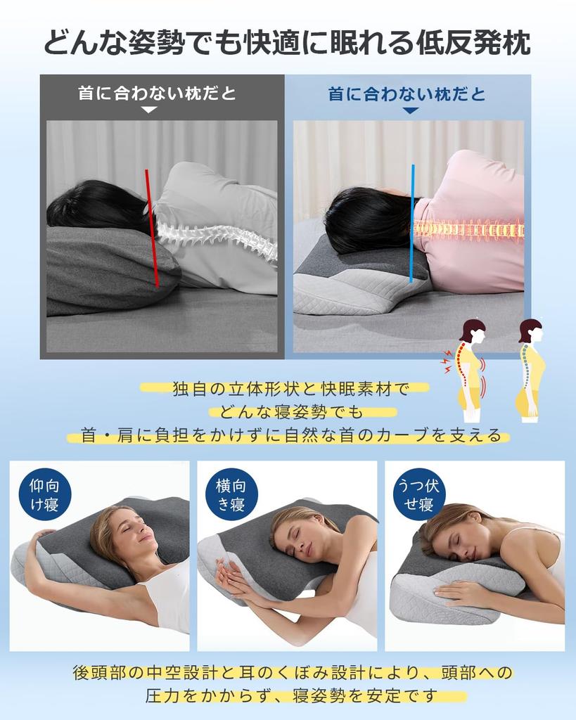 [Регулируемая высота для лучшего сна] Подушка разработана с учетом типа вашего тела. Его высоту можно регулировать на двух уровнях: 6,5 см на низкой стороне и 8,5 см на высокой стороне. Его могут использовать те, кто предпочитает подушку повыше или пониже.. Разработанная с вогнутой полостью вокруг ушей и затылка и изгибами по обеим сторонам, эта подушка поддерживает естественный изгиб шеи и естественное положение позвоночника, обеспечивая твердую и нежную поддержку для головы, шеи и плеч.. *Пожалуйста, обратите внимание, что указанный размер является фактическим размером и могут быть небольшие отклонения в размере.