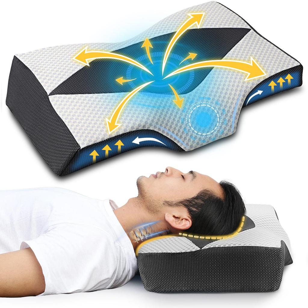 [Подушка для сна из материала с низкой упругостью] Изготовлена из уретанового материала, который обеспечивает удобную посадку, идеальную упругость и обеспечивает расслабление.. Он медленно погружается по форме вашей головы и мягко обволакивает вас.. Уникальная трехмерная форма и комфортный материал для сна поддерживают естественный изгиб шеи, не напрягая шею и плечи в любой позе сна.