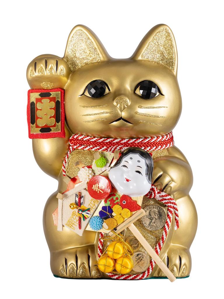 Счастливый кот Ацуме, правая рука, счастливый кот, манеки, счастливый фэн-шуй, украшение, коробка для пожертвований, золото (L-SIZE Золотой) Поднятый/Керамический_Lucky (fa_L