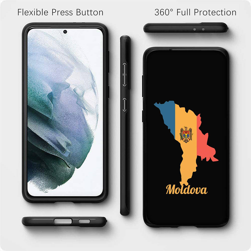 Для iPhone 16 15 X XR Samsung Galaxy S24 S23 Plus Xiaomi Redmi Note 13 12 11 Pro Max 10 14 OPPO Huawei чехол желтый черный флаг Молдовы карта телефон чехол