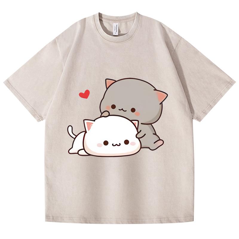 Ретро стираная винтажная женская футболка Kawaii Girl аниме футболка флис Harajuku свободный свитер милая пара подарок на день святого Валентина футболка