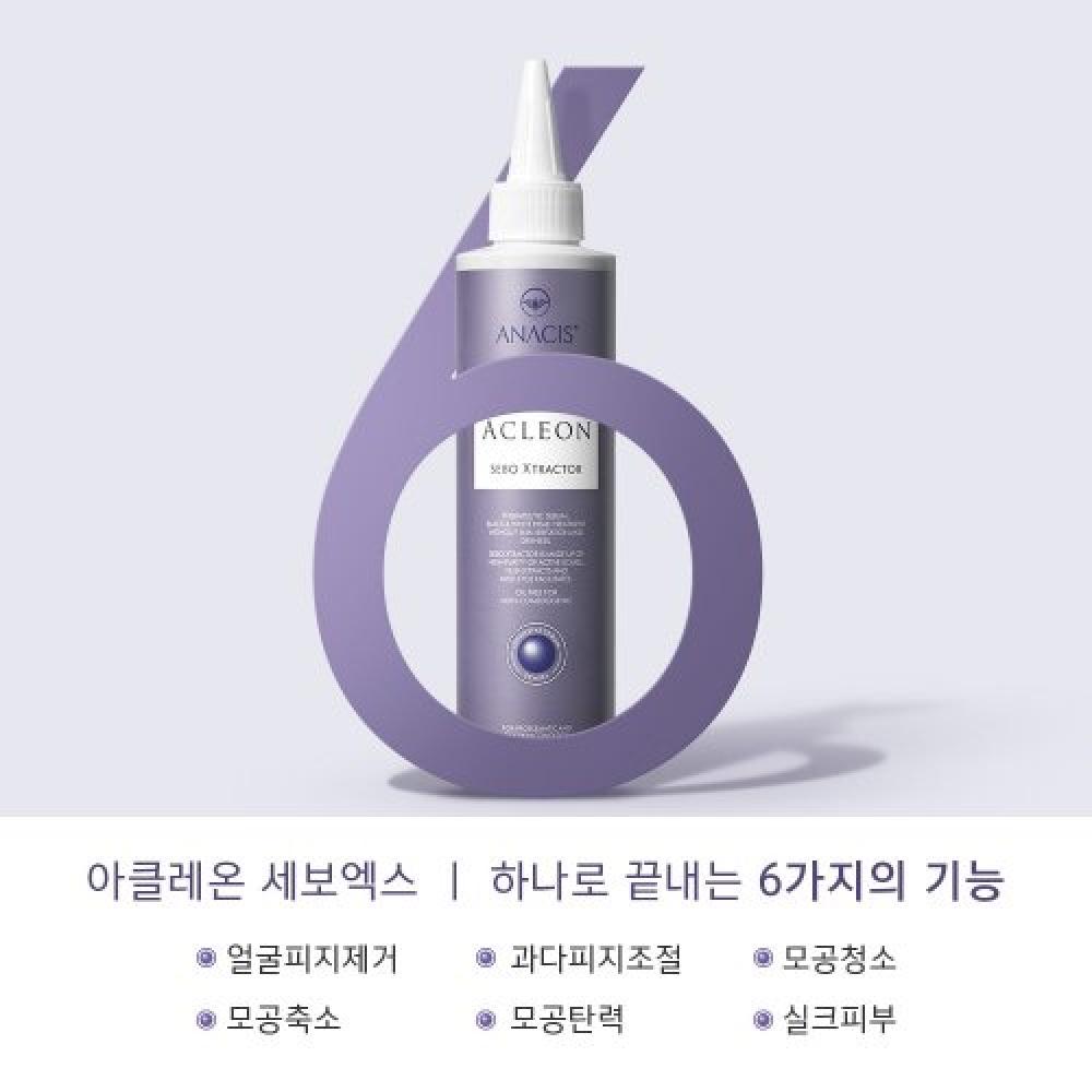 ACLEON Anacis Sebo X is a special ampoule and skincare product focused on fat absorption, effective for managing oiliness on the face and scalp. The set includes Sebo X (200ml) and Sebo Derm Solution (15ml).