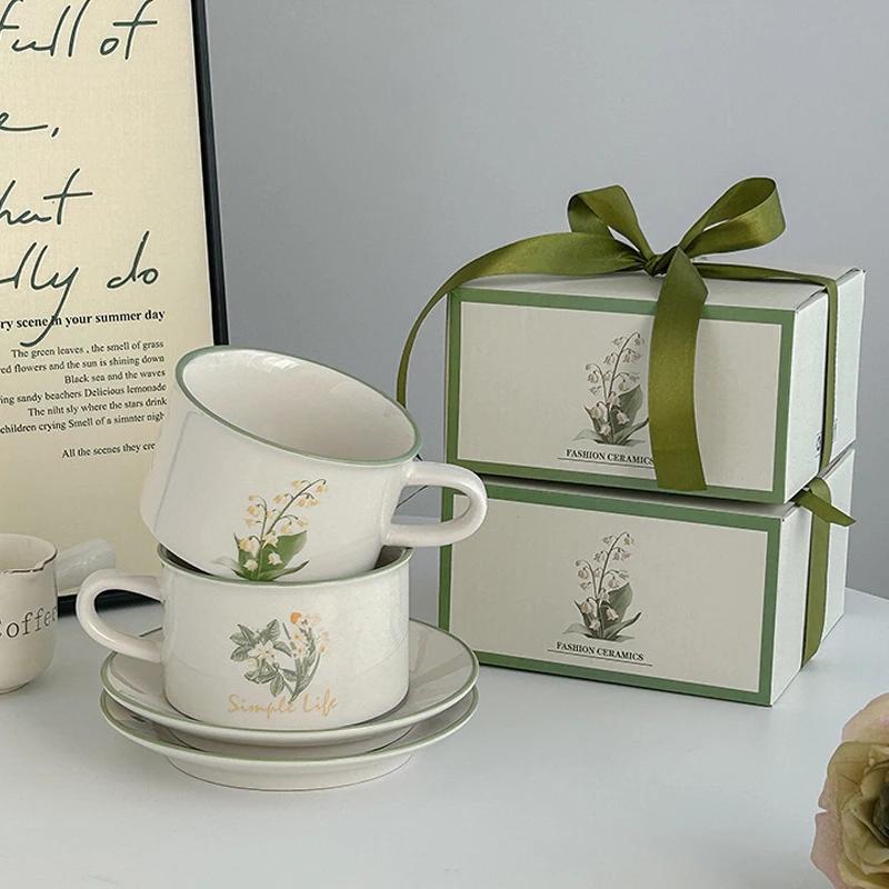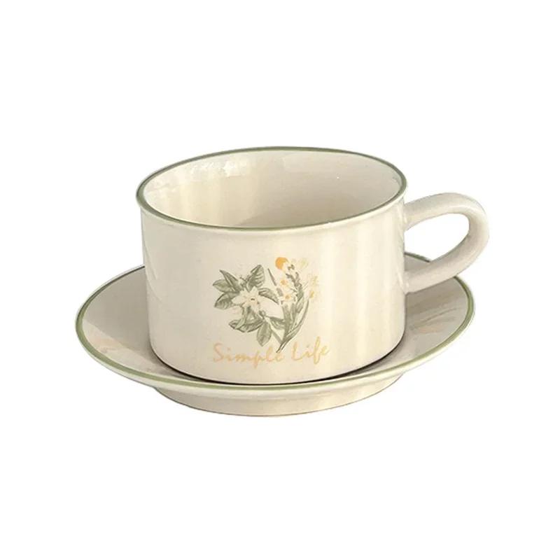 Глиняная ручная роспись в винтажном керамическом стиле, кофейная кружка, молочный сок, кружка и блюдце, набор для послеобеденного чая с тюльпанами и лилиями