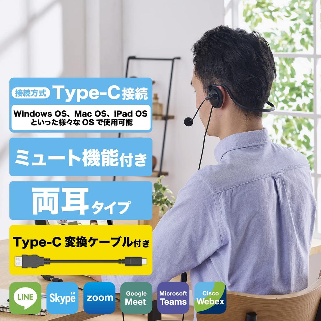 Elecom Гарнитура с шейным ободом USB-подключение с микрофонной штангой USB-кабель-переходник в комплекте Binaural Black Type-C HS-NB05UCBK