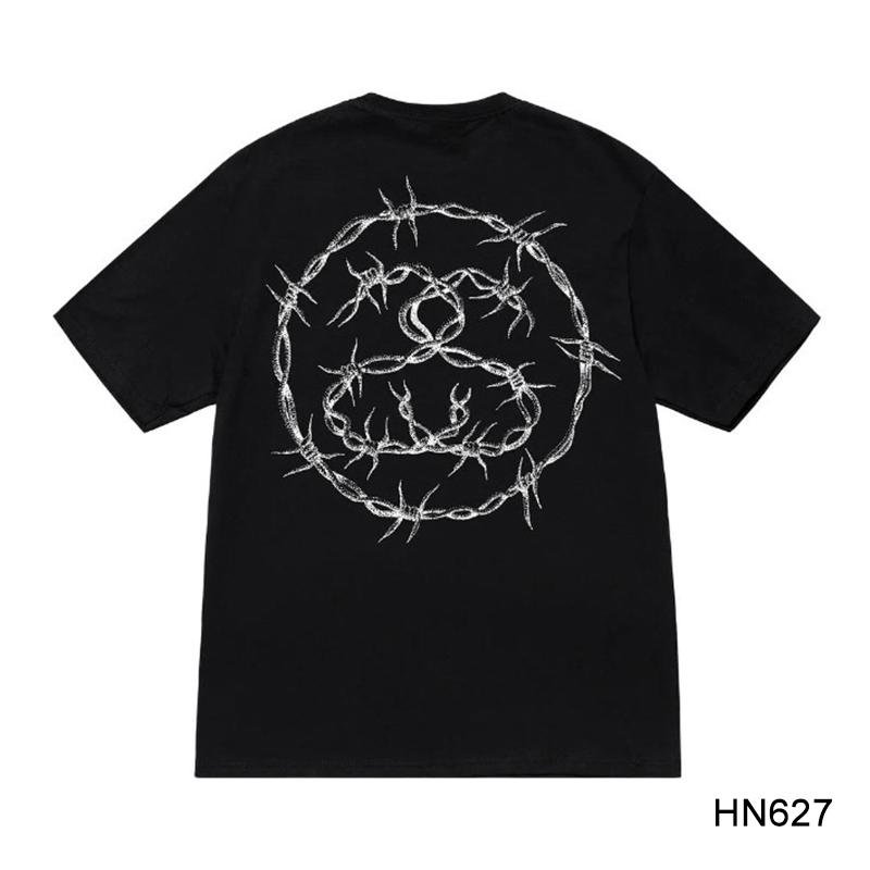 Stussy 2025 Весна/Лето Новая высококачественная хлопковая футболка с круглым вырезом для мужчин и женщин Футболка для пар с принтом в виде железной проволоки