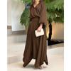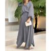 Женский летний свободный комплект из двух предметов большого размера, однотонный топ с длинными рукавами и юбкой средней длины с высокой талией