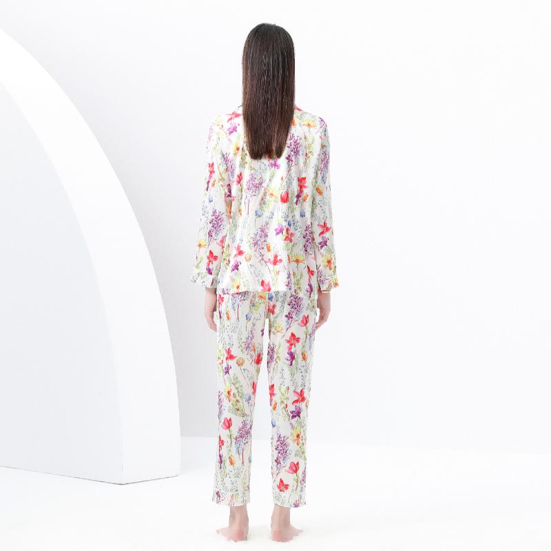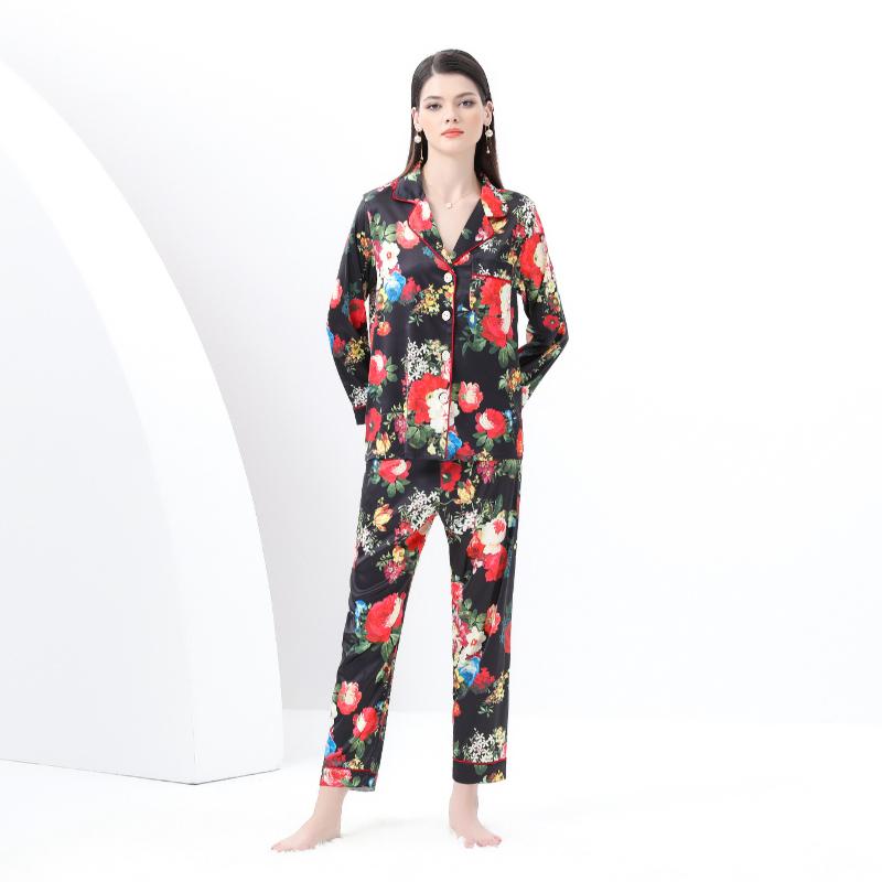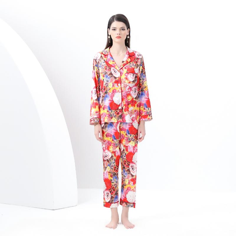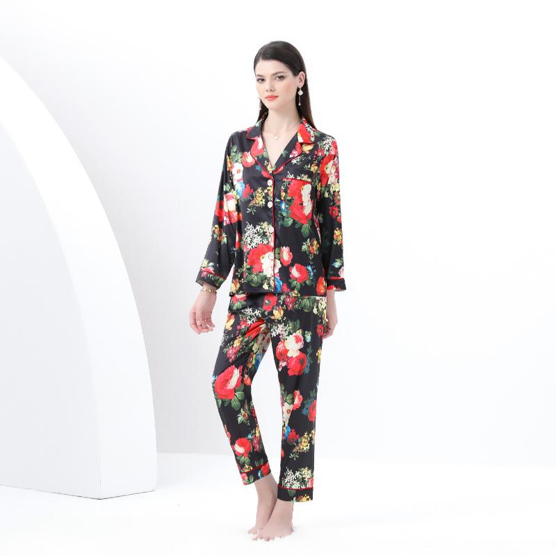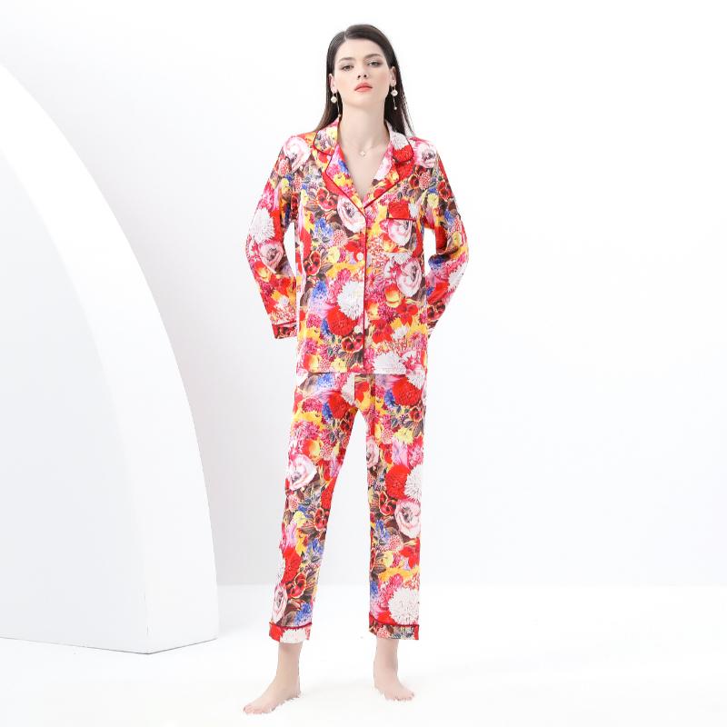 Пижамный комплект с винтажным принтом для женщин, рубашка с воротником-блейзером и брюки длиной до щиколотки, одежда для сна и отдыха