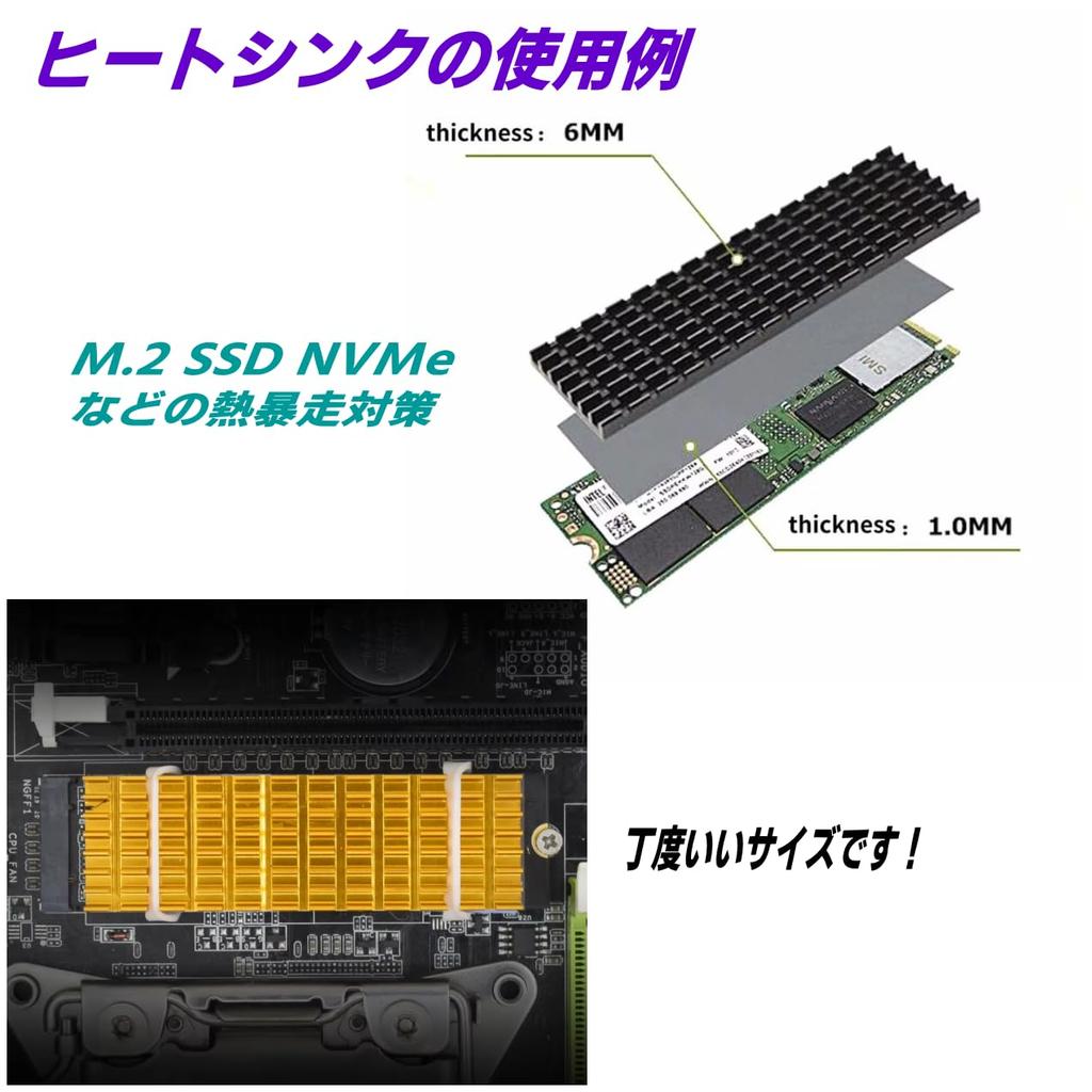 CNCTWO Aluminum Heat Sink Ideal for SSD Cooling Comes with Adhesive Blue Tape Thickness M.2 Double-Sided (6mm Black)
