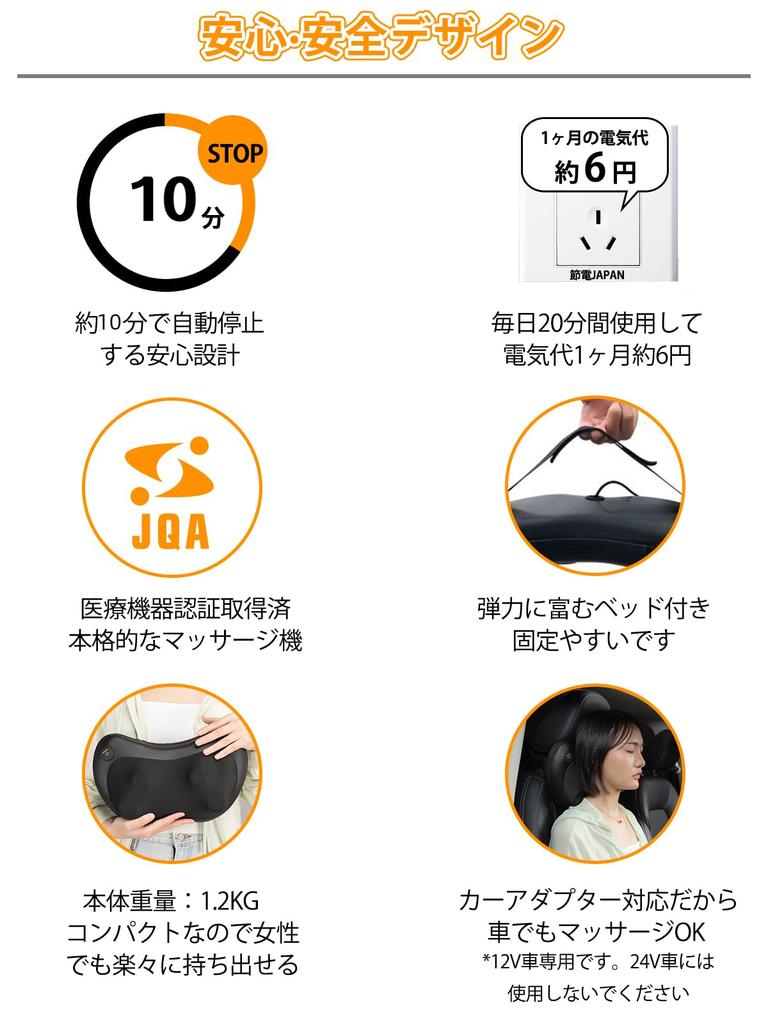 [Рекомендуется для следующих категорий людей] Поскольку устройство сертифицировано как медицинское, оно рекомендуется людям, испытывающим трудности с избавлением от физической усталости, тем, кто страдает от повреждений нервов и других частей тела, а также тем, кто страдает хронической усталостью ног или мышечной скованностью.. Это массажер-подушка компактного дизайна, который подходит для той области, которую вы хотите помассировать: от шеи, плеч, талии, бедер до подошв ног.