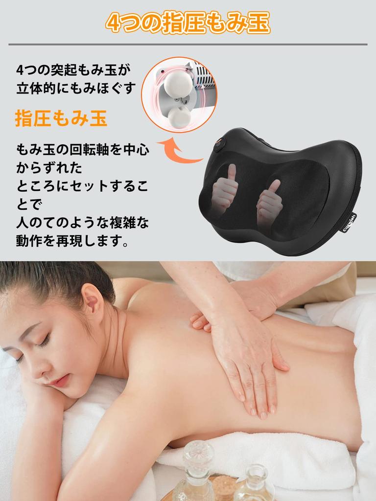 [Нежный комфорт, как ручной массаж]: Массаж шиацу с четырьмя встроенными эластичными разминающими шариками имитирует руки настоящего массажиста и помогает расслабить ваше тело посредством массажа.. Подушка изготовлена из ткани, которая приятна на ощупь, отлично пропускает воздух и хорошо выглядит.