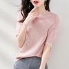 Женские свитера, пуловеры 2025 Лето Короткий рукав О-образный вырез Белый вязаный свитер Женские топы Пуловер JJ320