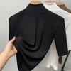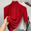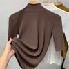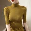 Базовая рубашка с высоким воротом для женщин, новая женская однотонная футболка со средними рукавами, облегающая эластичная рубашка