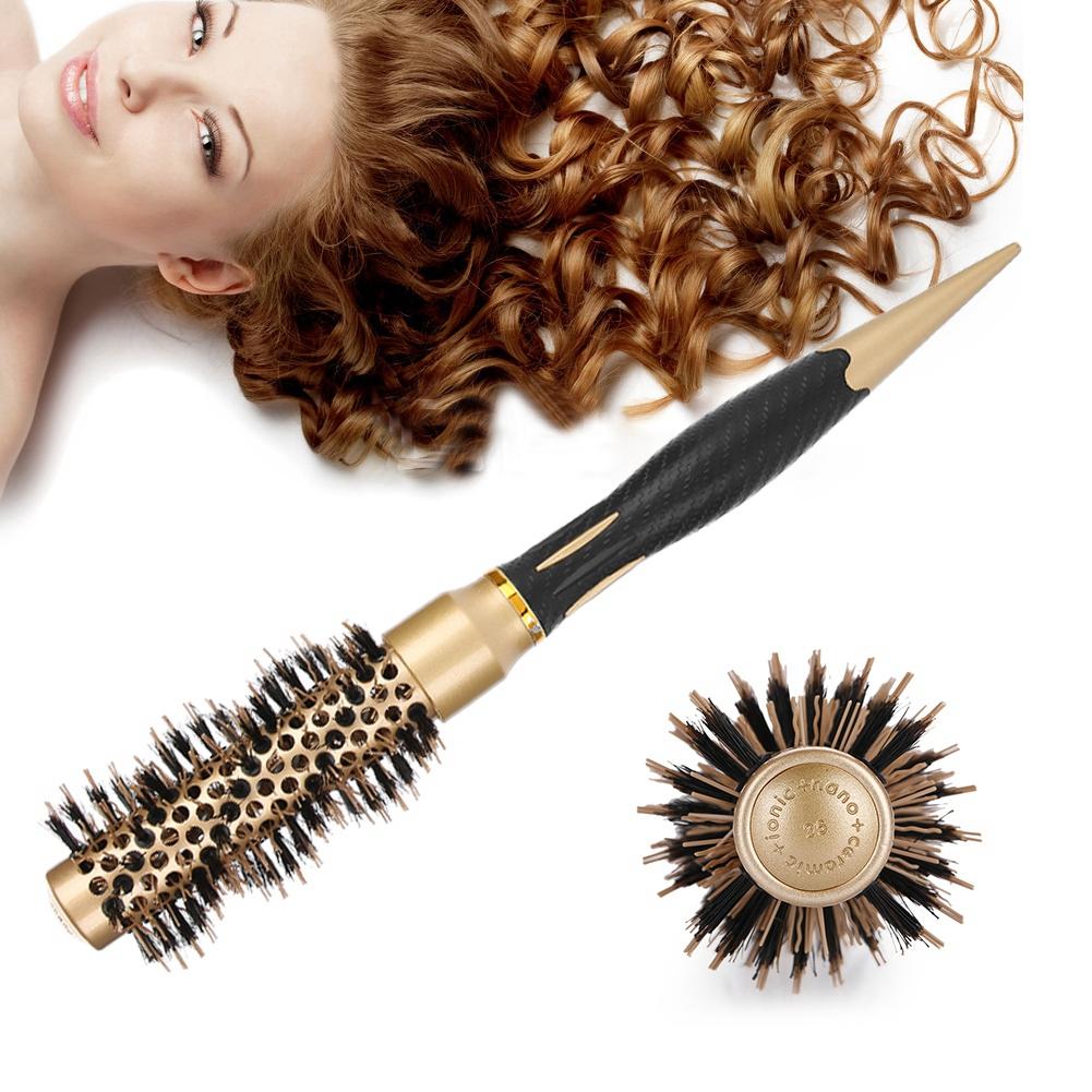 Профессиональная антистатическая круглая расческа для волос, салонная щетка для укладки, брошь из нейлона и твила(25мм)