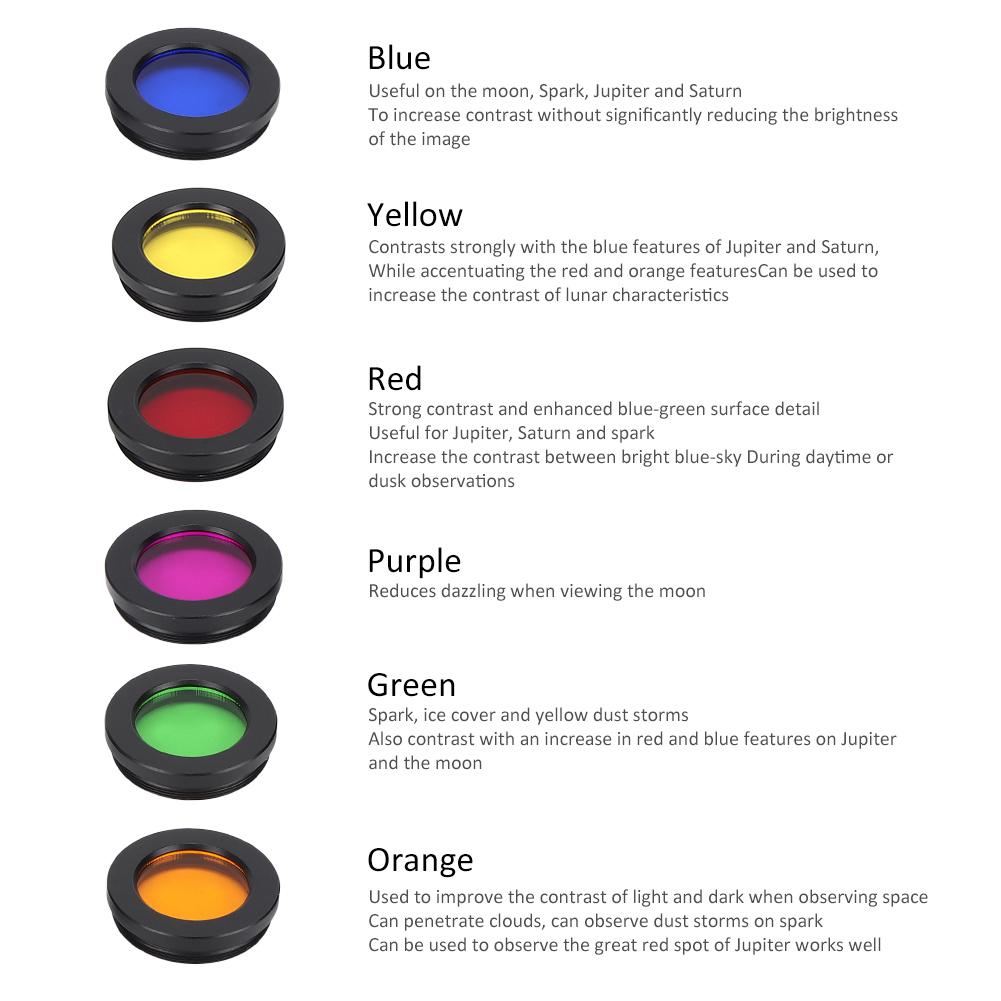 6 цветов 1,25-дюймовые цветные астрономические телескопы окуляры резьбовой фильтр комплект с местом для хранения