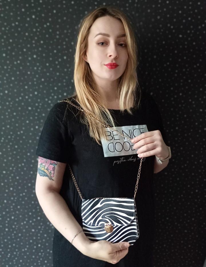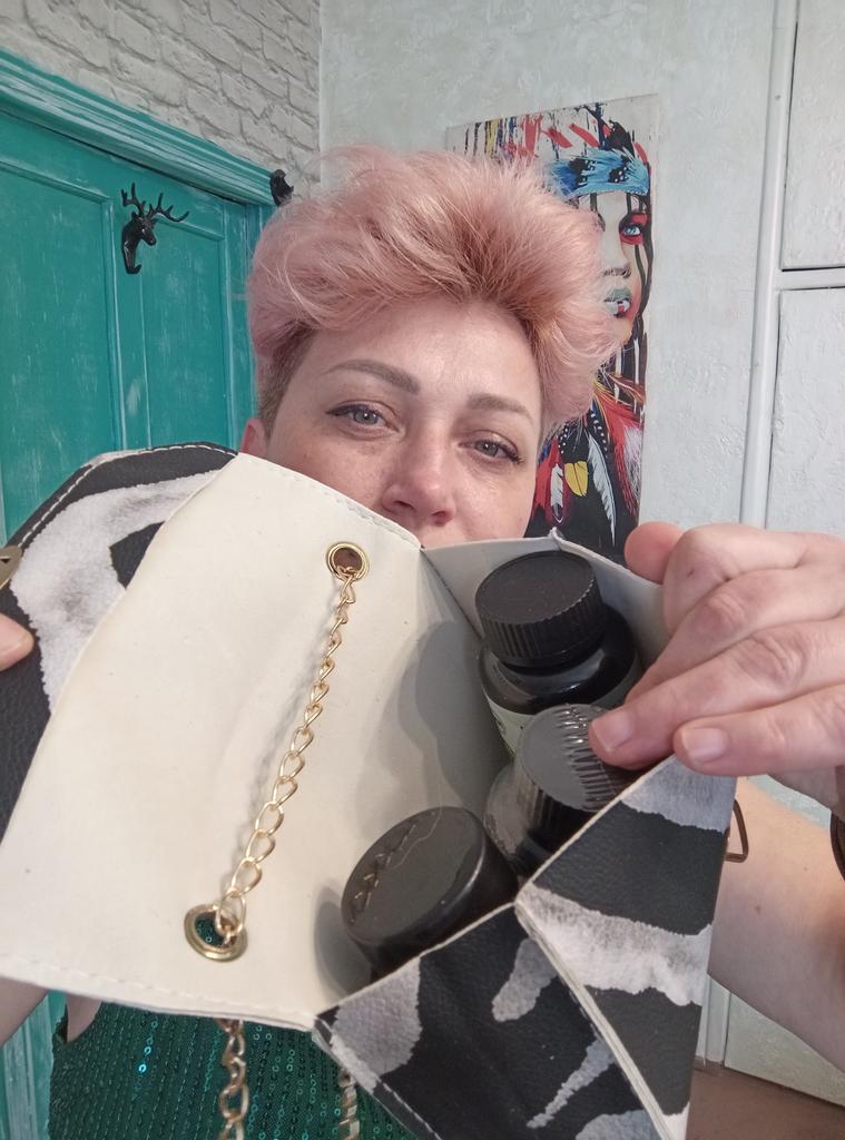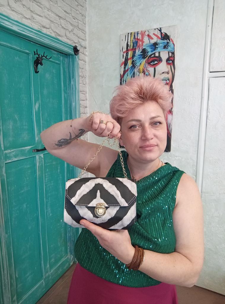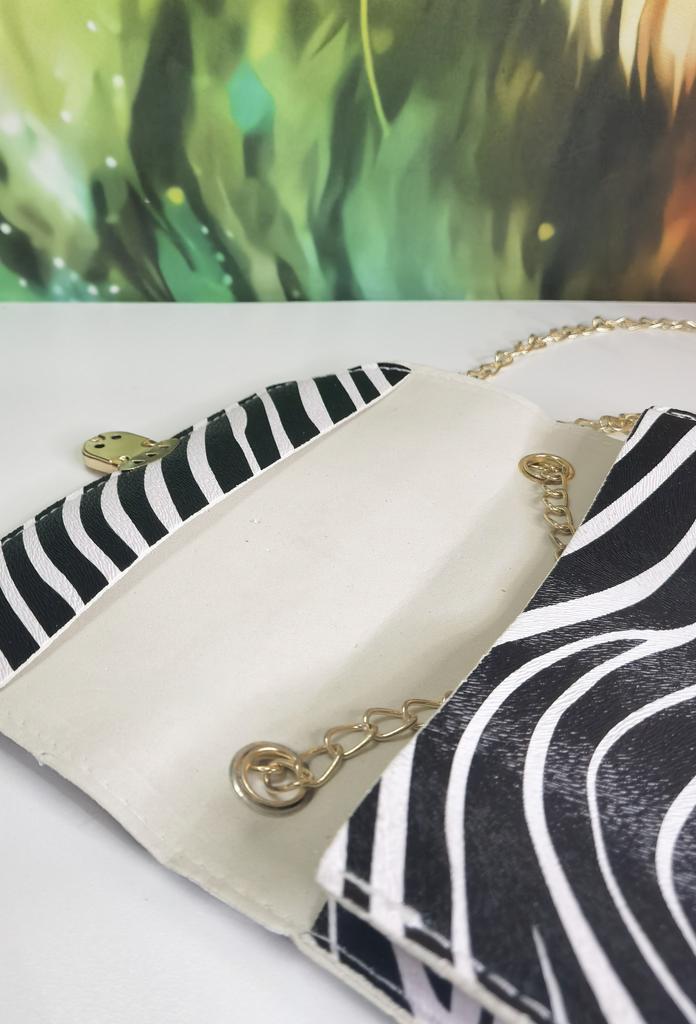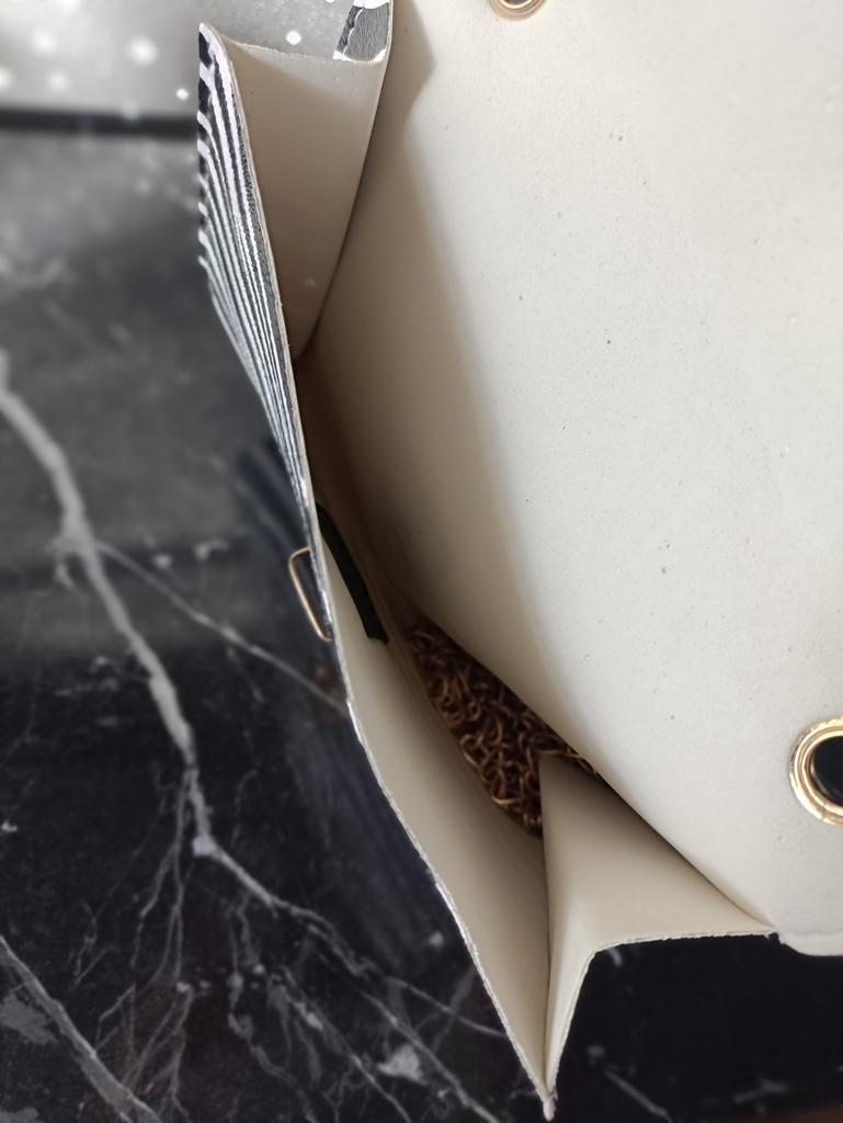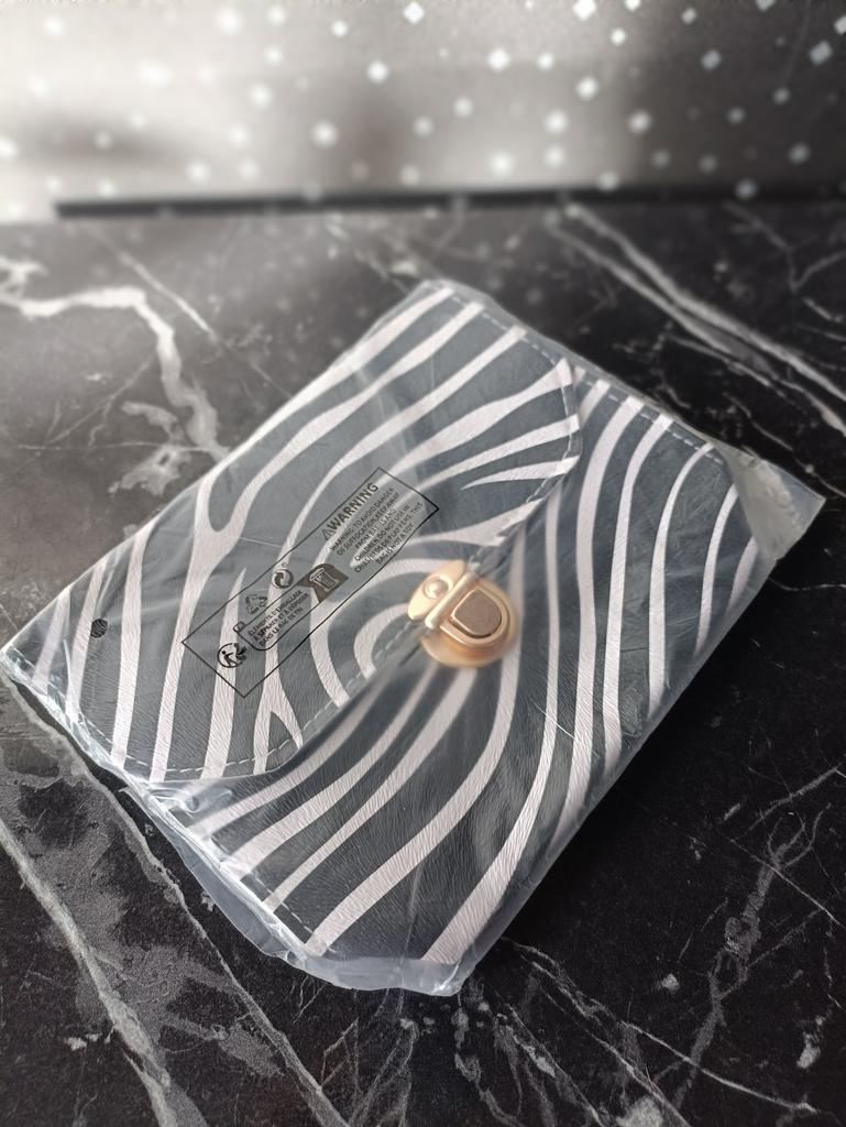 Удобная, симпатичная и очень бюджетная сумочка. Размер 20 х12 см. Помещаются все необходимые дамские мелочи. Цвет зачётный, зебровый. Очень неплохо смотрится. Сумочка застёгивается на замочек. Внутри одно отделение, без подкладки. Фурнитура симпатичного золотого цвета. Вместо ремешка-цепочка приятного золотистого цвета. Ее надо вставить в отверстия на сумке самой, на цепочке есть специальные карабинчики.
