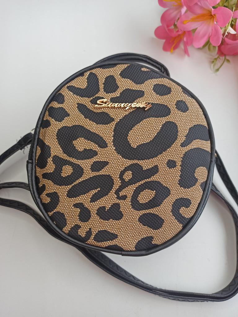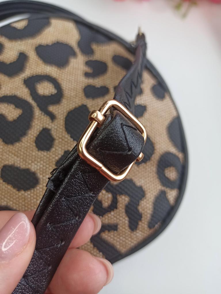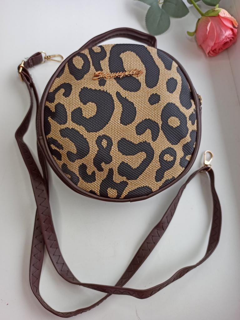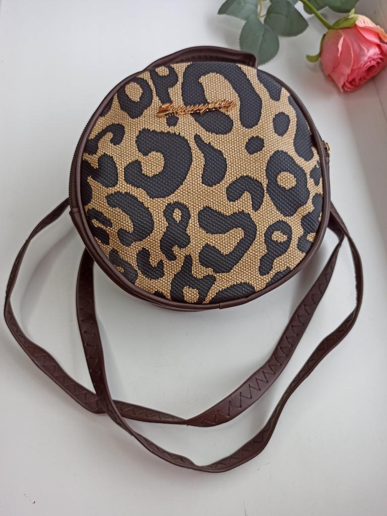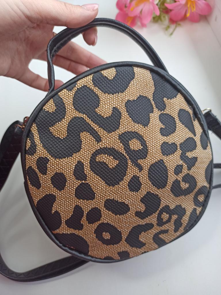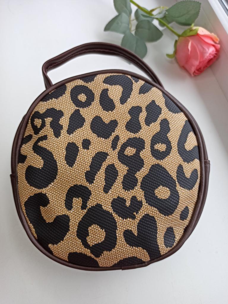 Маленькая круглая сумочка с леопардовым принтом Пошита сумочка из ПУ кожи, всередине на подкладке. Сумочка небольшая, диаметр 17 см., но вместительная. Застегивается на молнию, молния работает хорошо. Имеется короткая ручка, и длинный ремешок который пристегивается с помощью карабинов и регулируется по длине. Всредине есть небольшой кармашек. Пошита сумочка аккуратно. На странице продавца сумочка предоставлена в 3 цветах. Сумочка понравилась.