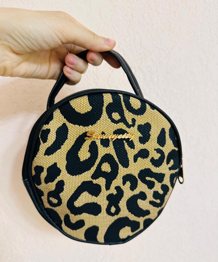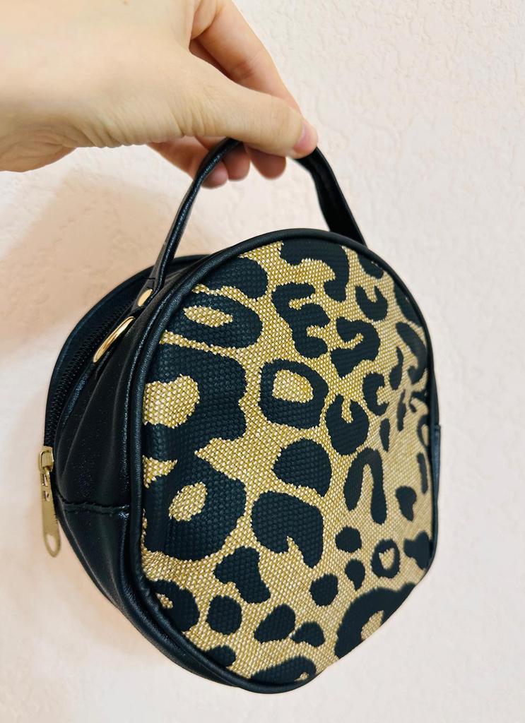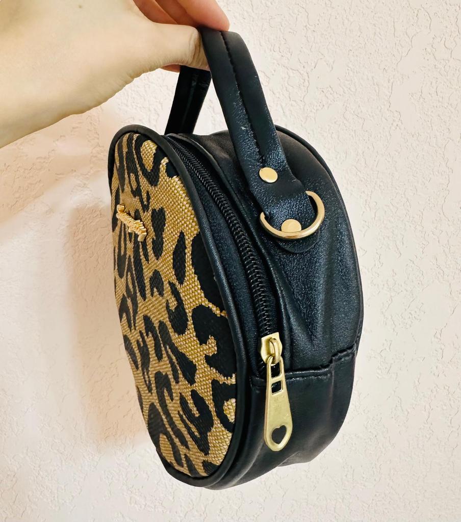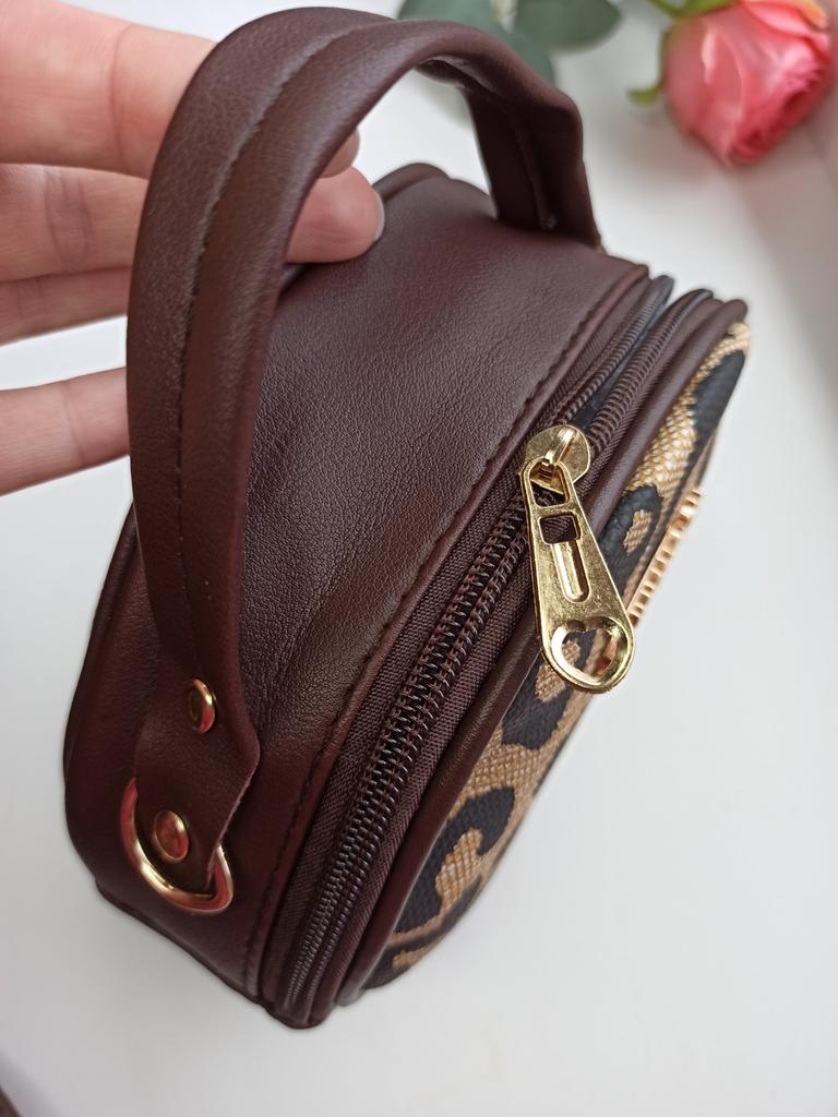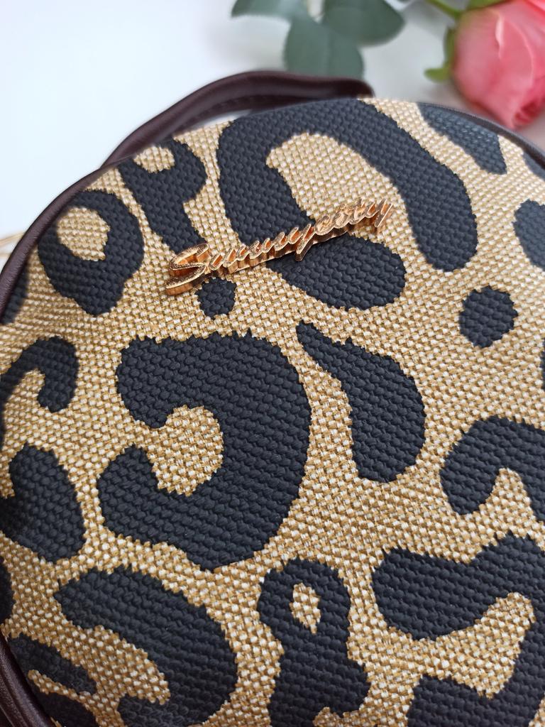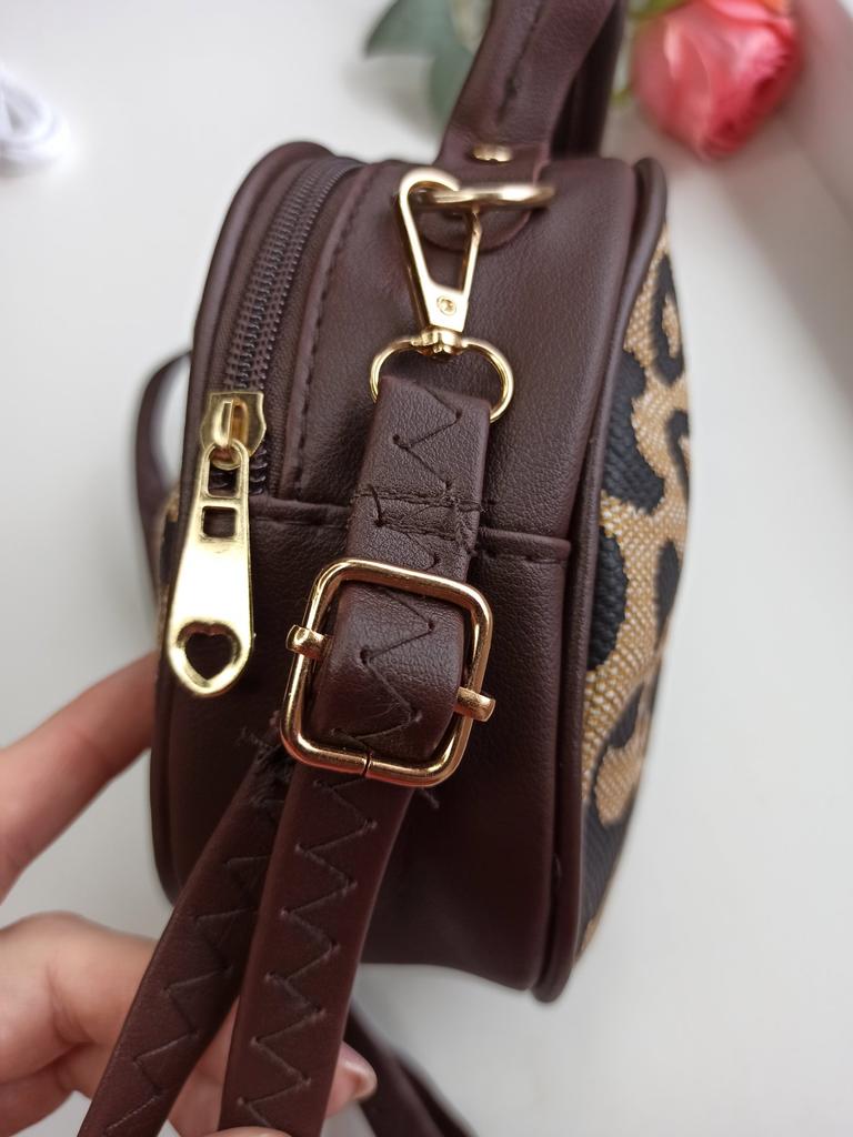 Маленькая круглая сумочка с леопардовым принтом Пошита сумочка из ПУ кожи, всередине на подкладке. Сумочка небольшая, диаметр 17 см., но вместительная. Застегивается на молнию, молния работает хорошо. Имеется короткая ручка, и длинный ремешок который пристегивается с помощью карабинов и регулируется по длине. Всредине есть небольшой кармашек. Пошита сумочка аккуратно. На странице продавца сумочка предоставлена в 3 цветах. Сумочка понравилась.