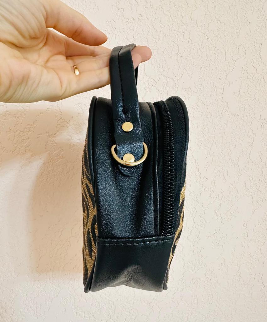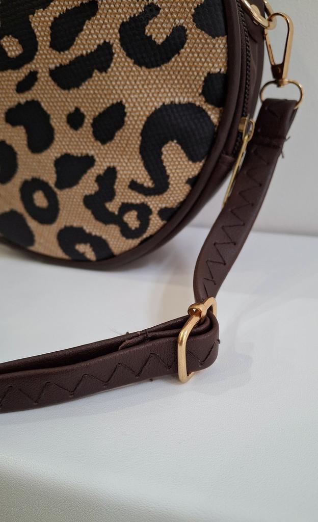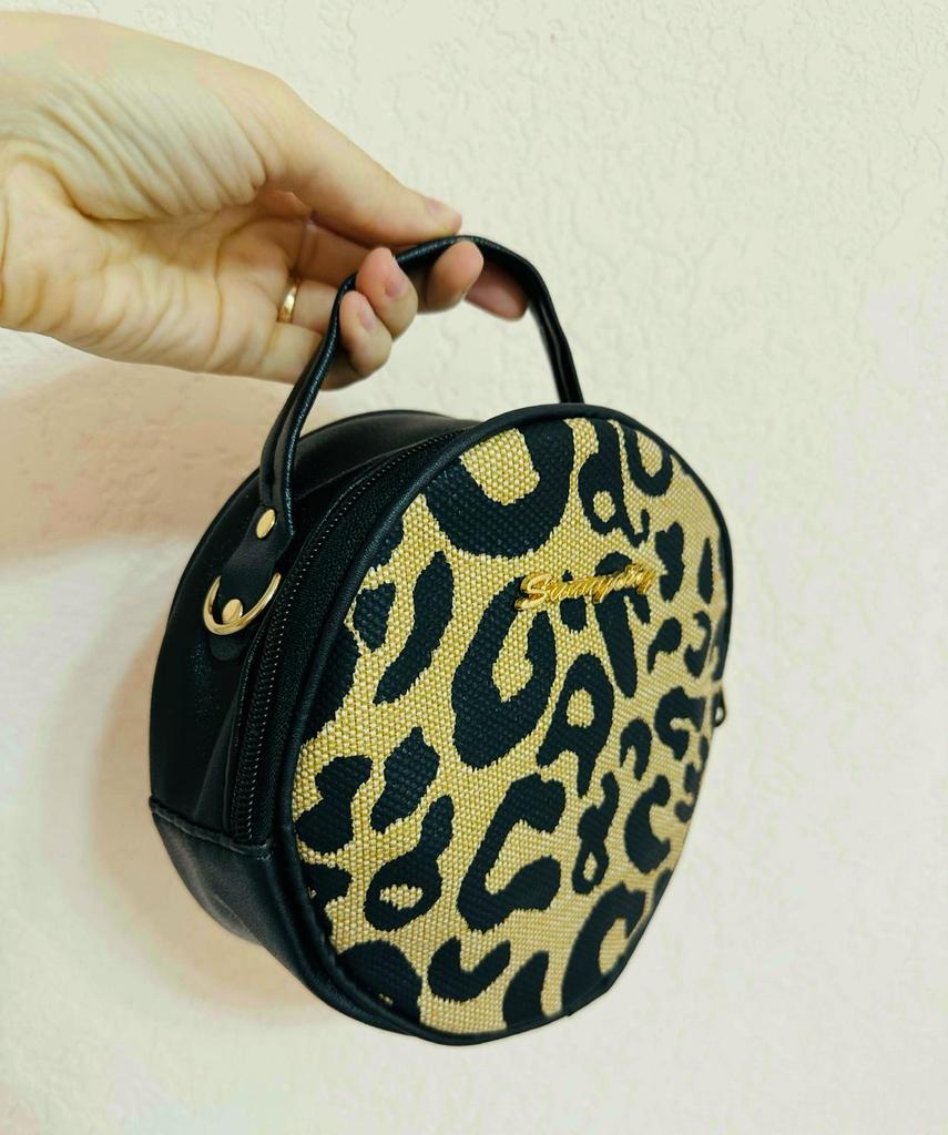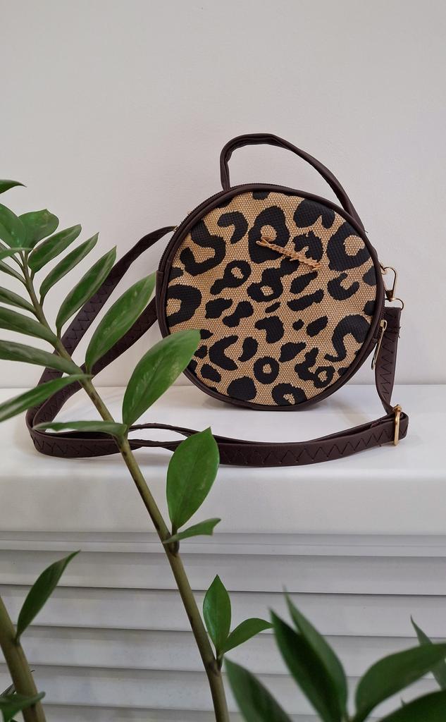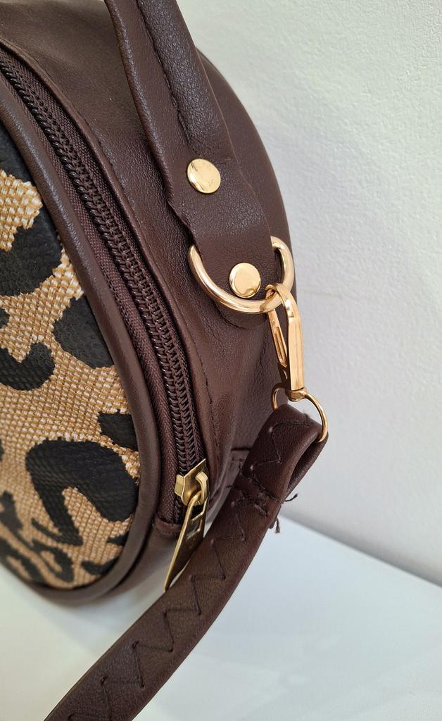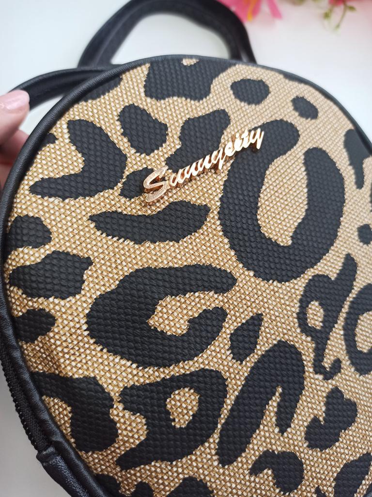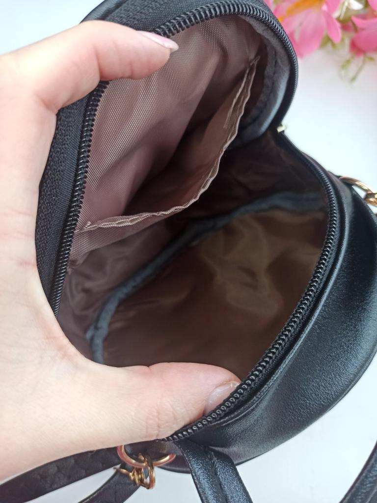 Маленькая круглая сумочка с леопардовым принтом Пошита сумочка из ПУ кожи, всередине на подкладке. Сумочка небольшая, диаметр 17 см., но вместительная. Застегивается на молнию, молния работает хорошо. Имеется короткая ручка, и длинный ремешок который пристегивается с помощью карабинов и регулируется по длине. Всредине есть небольшой кармашек. Пошита сумочка аккуратно. На странице продавца сумочка предоставлена в 3 цветах. Сумочка понравилась.