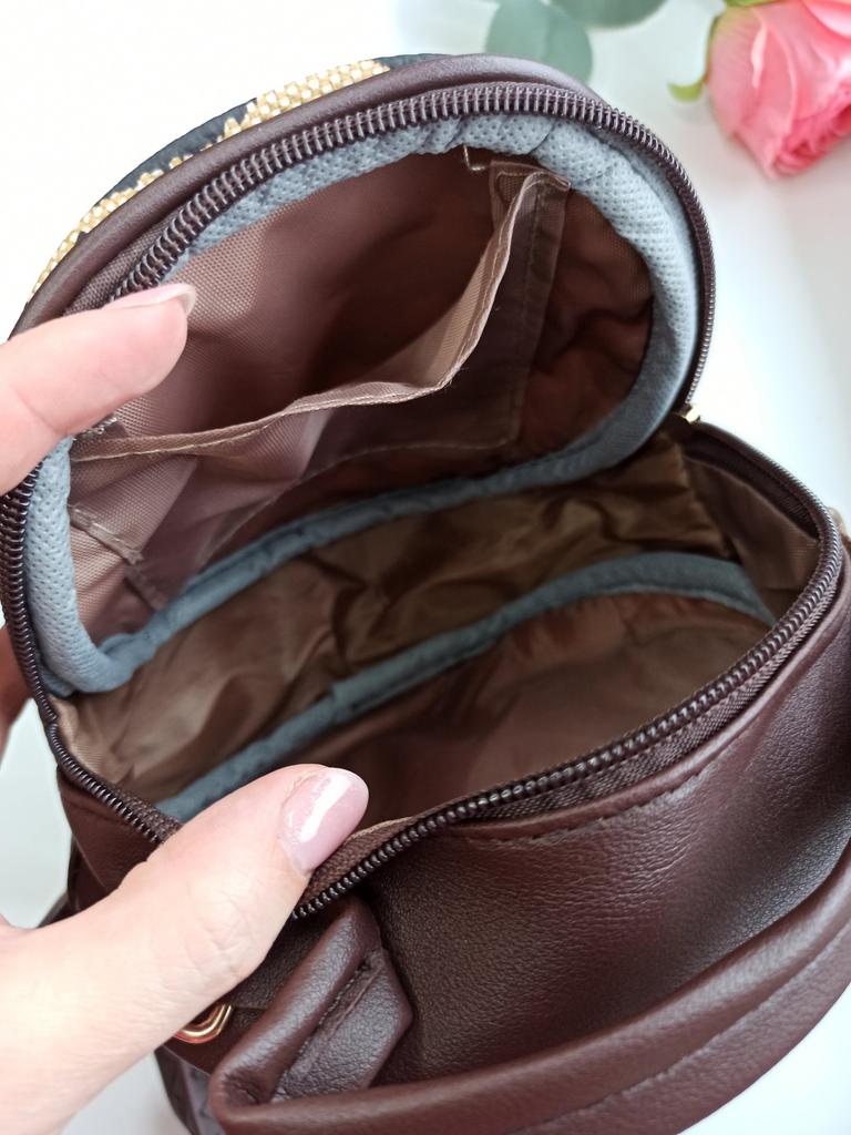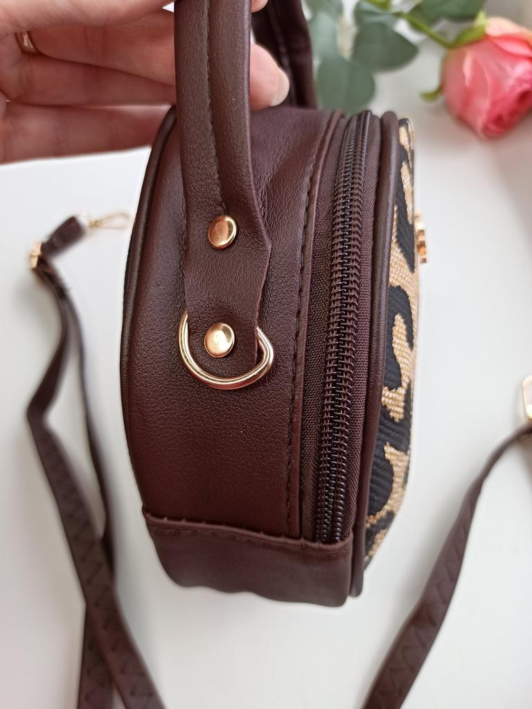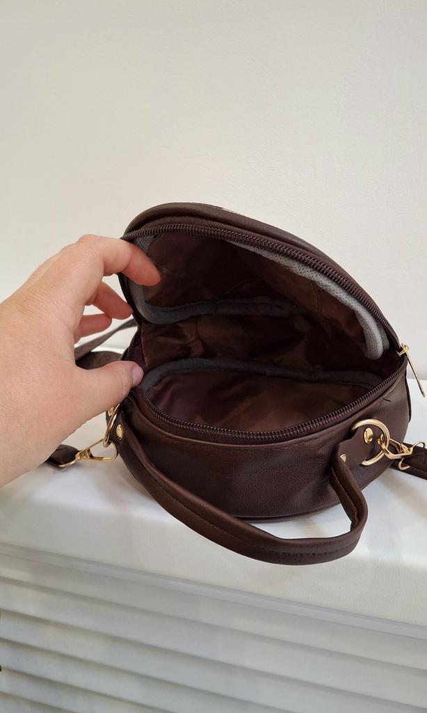 Миниатюрная сумка в коричневом цвете. Сумка имеет круглую форму и интересный цветовой вариант, который отлично сочетает коричневые и бежевые оттенки. Это делает ее универсальной: она подходит как для повседневного использования, так и для более нарядных выходов. Плечевой ремень на карабинах – это огромный плюс. Он очень удобный, но не самый прочный, пара своёв PU и строчка зигзаг. Ремень можно регулировать. Я довольно часто использую сумку в движении, и такой ремень позволяет освободить руки. Что касается внутреннего пространства, то сумка имеет одно главное отделение и небольшой карман. Для меня это достаточно, так как я обычно держу в сумке только самые необходимые вещи: телефон, кошелек и немного косметики. Больше в ней и не нужно! Качество материала тоже радует – сумка выглядит надежной, на летний сезон её должно хватить. Я уже несколько раз использовала её, и никаких повреждений или потёртостей не появилось. Единственное, что стоит учитывать, это то, что из-за круглой формы сумки, не всегда удается быстро найти вещи внутри. Но, на мой взгляд, это не критично. Есть места где торчат нитки, но это поправимо. В общем, я довольна своей покупкой и рекомендую эту сумку всем, кто ищет что-то стильное и практичное! На выбор у продавца есть ещё пара цветовых решение и вам есть из чего выбрать. ⭐ Продавец упаковал товар в почтовый конверт. Сумка помялась, но довольно быстро выпрямилась (я засунула в неё пакеты). ⭐ Трек номер отслеживался до почтового отделения. ⭐ В приложении пришло уведомление о готовности к выдаче заказа. ⭐ Доставка в Петербург заняла 23 дня.