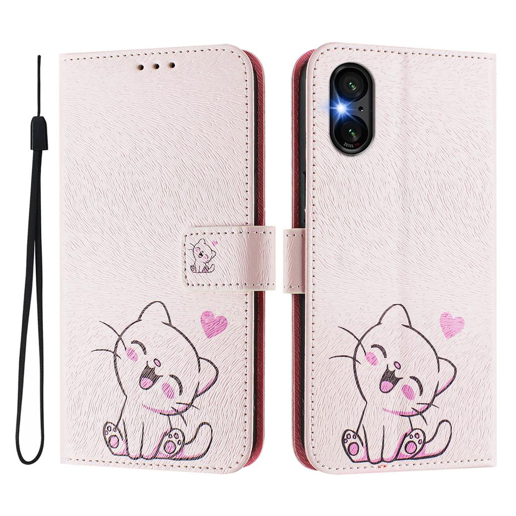 Роскошный кожаный чехол-книжка с милым котом для Sony Xperia 5 IV / 10 IV, Xperia 1 V / 5 V / 10 V, Xperia 1 VI, 5 VI, 10 VI.