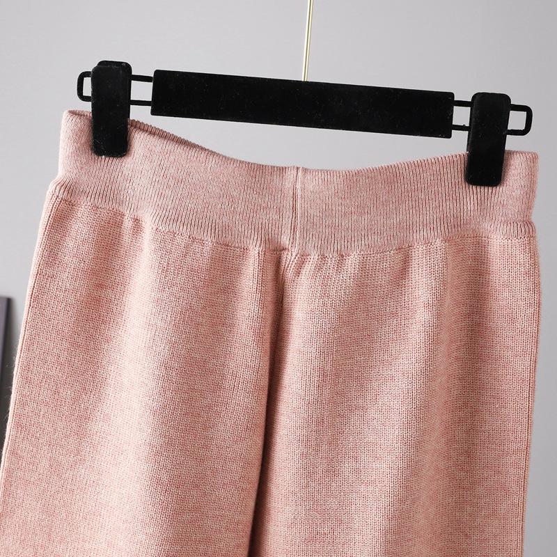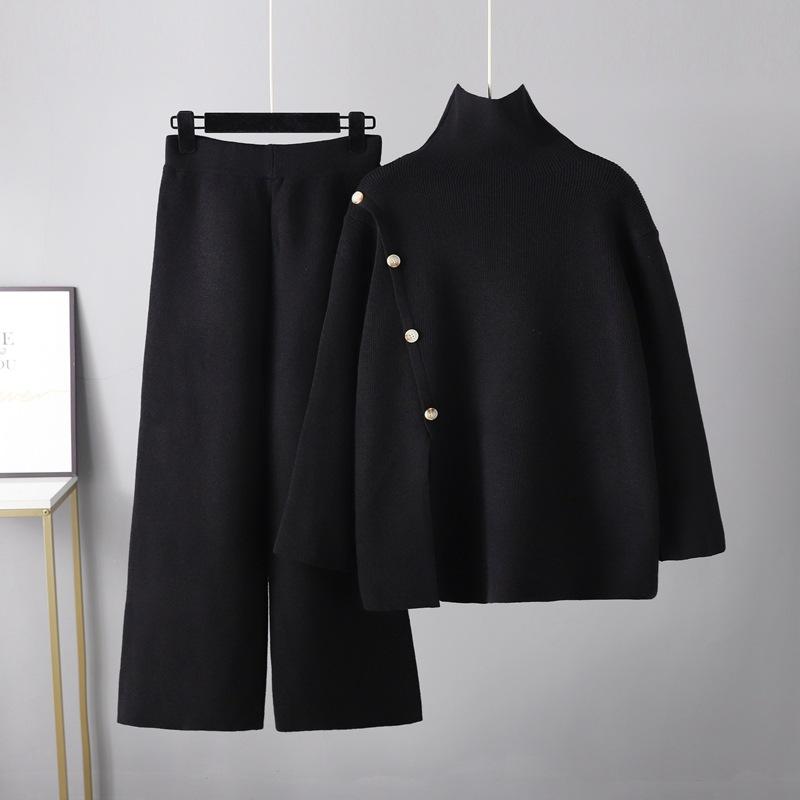 Женский повседневный свободный свитер, однотонный трикотажный свитер с высоким воротом, свитер, широкие брюки, трикотажные комплекты из 2 предметов