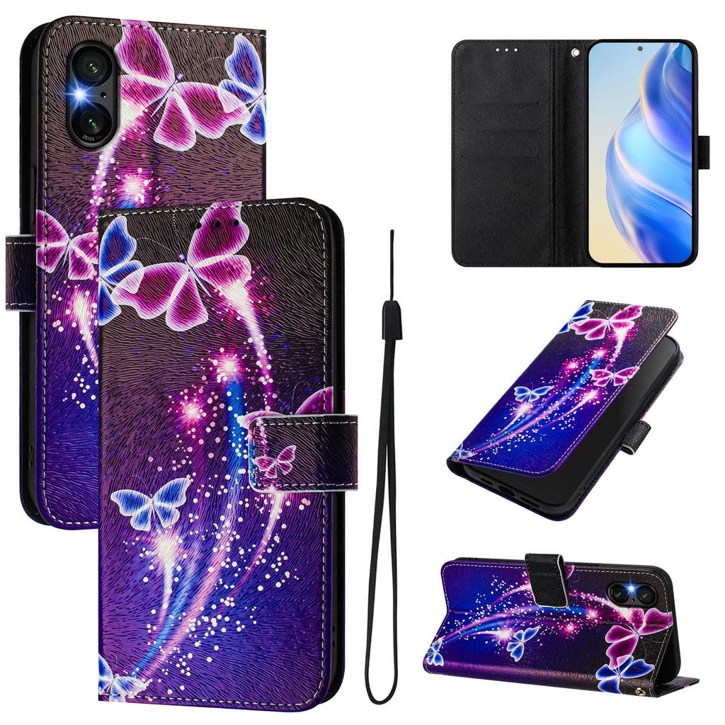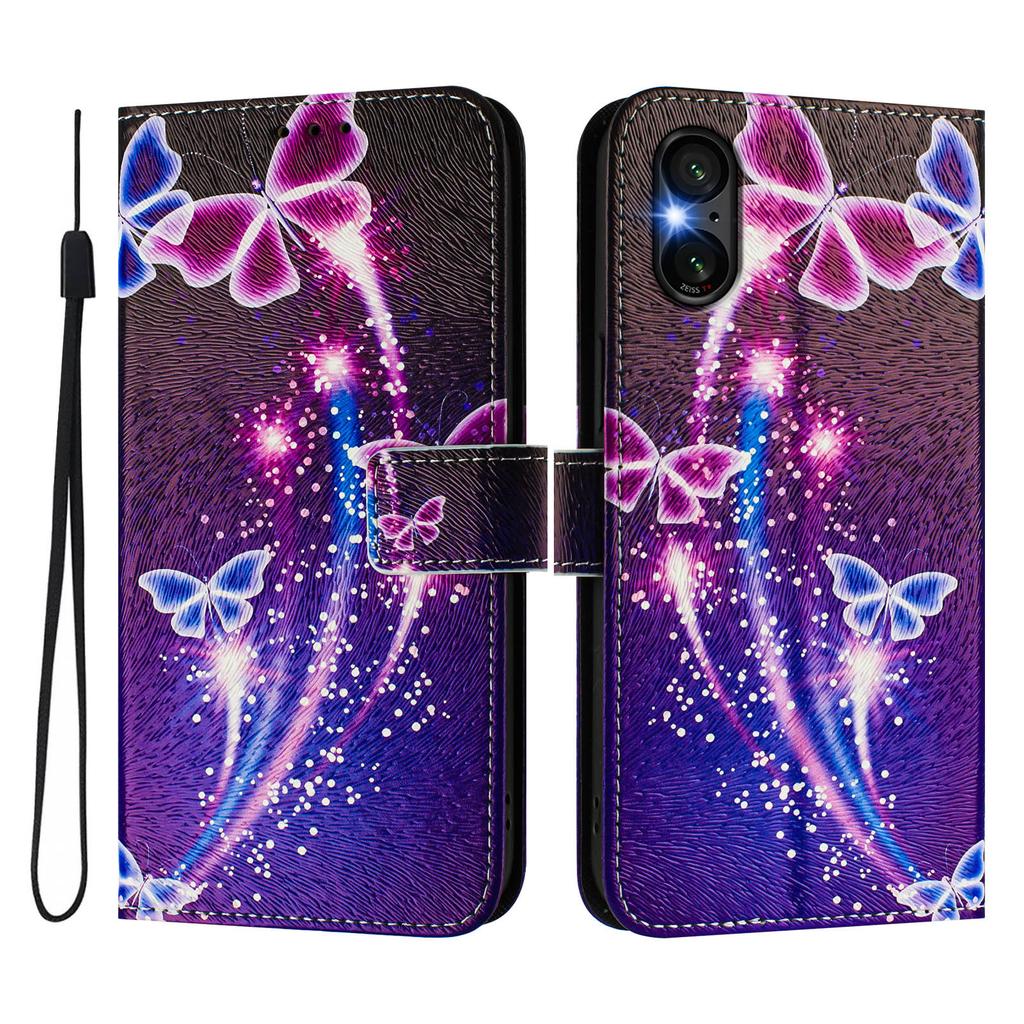 Роскошный кожаный чехол-книжка с рисунком бабочки фейерверка для Sony Xperia 5 IV / 10 IV, Xperia 1 V / 5 V / 10 V, Xperia 1 VI, 5 VI, 10 VI.
