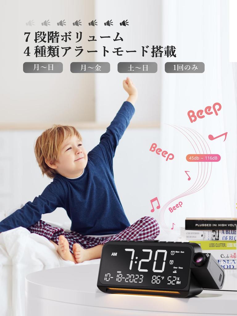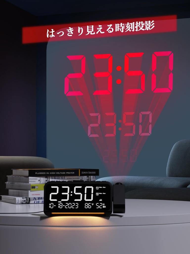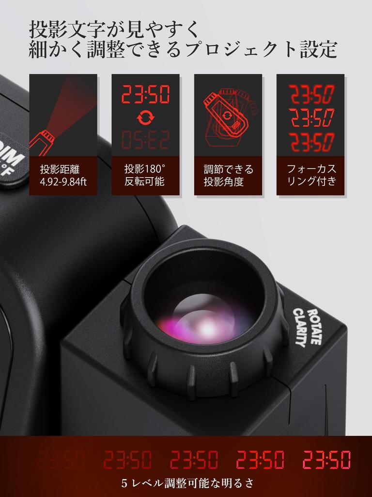 [Проекционные часы с вращением на 350° и фокусировочным кольцом] Проецируют четкое цифровое время на стены и потолок комнаты, ими легко управлять, вращая угол проекции на 350 градусов и переворачивая экран проектора на 180 градусов, а также регулируя фокусировочное кольцо на оптимальном расстоянии в соответствии с вашими потребностями.. Его хорошо видно из любой точки комнаты, и люди с близорукостью могут легко узнать время, не надевая очков.