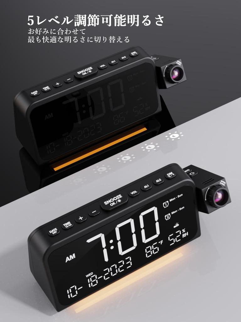 [Поддерживает комфортную среду для сна] Легко управляйте светодиодным ночным светом в нижней части часов с помощью одной кнопки, создавая нежную и идеальную атмосферу с мягким светом, что полезно, когда вы идете в ванную комнату посреди ночи.. И проектор, и дисплей имеют 5 уровней яркости, а поскольку они управляются независимо, вы можете регулировать яркость по отдельности, чтобы она не мешала вам спать.