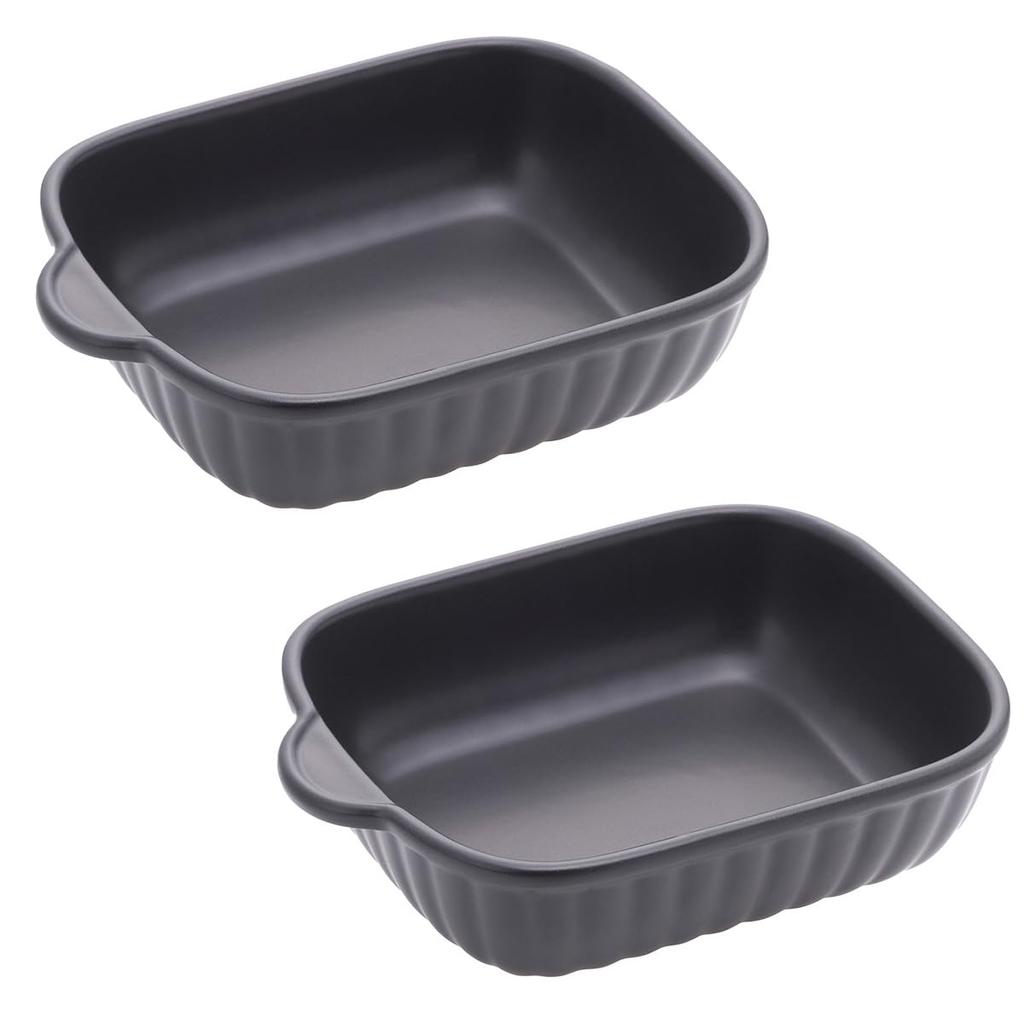 Набор керамической посуды для запекания Nakashima Gratin Dish Oven Cooking, экономящий время, набор тарелок для тостера половинного размера (Черный, 2)