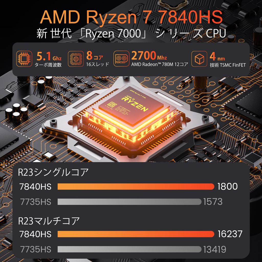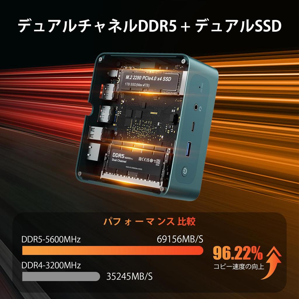Ryzen 7 7840HS DDR5 32 ГБ (16*2 макс.. 32ГБx2) Память + M.2 2280 1 ТБ PCIe 4.0 SSD (до 2 ТБ) Память для хранения данных поддерживает DDR5, а пропускная способность значительно расширена.. Благодаря сверхбыстрому твердотельному накопителю PCIe4.0 ваша ОС будет работать быстрее.. Оснащен еще одним слотом M.2 2280 PCIe4.0 SSD (до 8 ТБ), вы можете настроить его по своему усмотрению, не беспокоясь о нехватке места. Больше места для хранения данных обеспечивает более плавную работу вашего мини-ПК. Простой и удобный способ хранения фильмов/фотографий с цифровой камеры и т. д.
