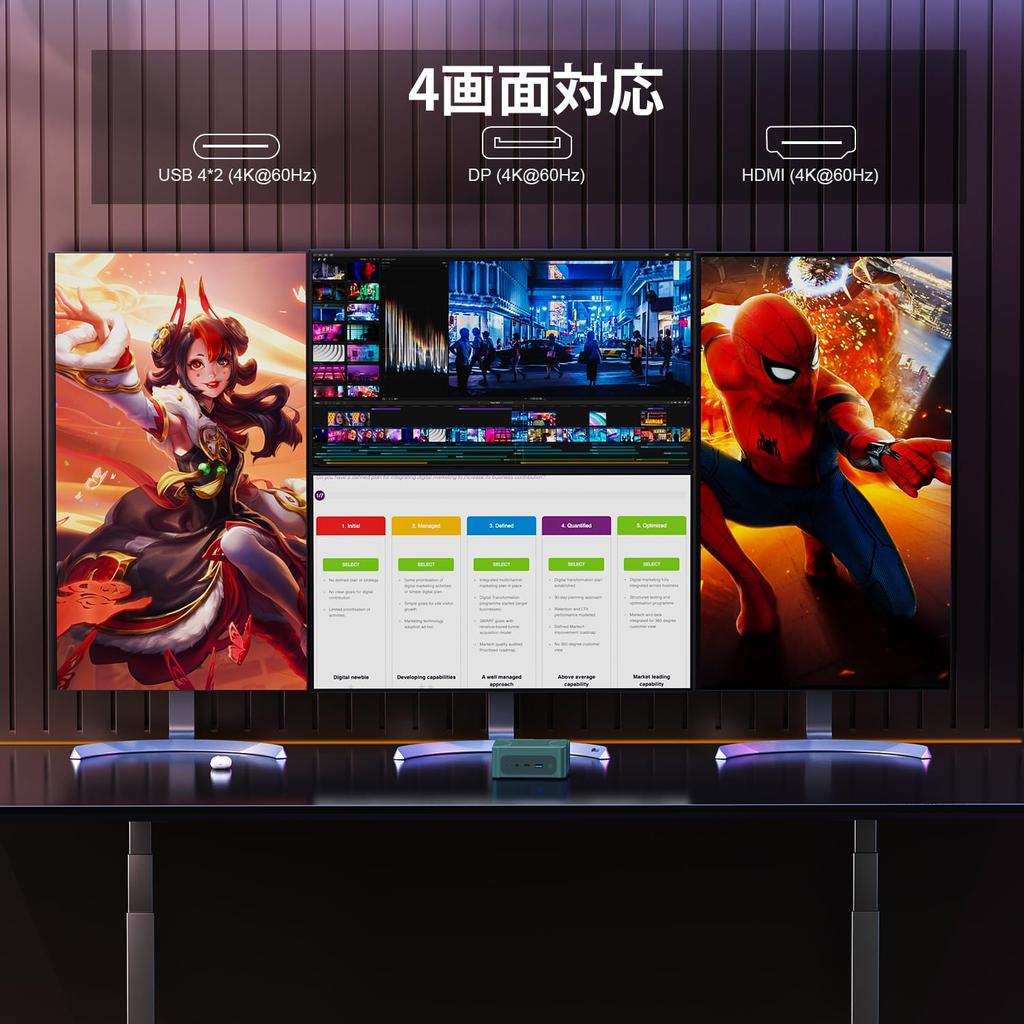 Выходные порты дисплея Beelink SER7 7840HS включают 1 x HDMI2.1 (4K@144Hz) порт, 1 x DlsplayPort1.4 (4K@144Hz) порт и 2 x USB4 (4K @ 60 Гц) порты, поддерживающие отображение 4-х экранных мониторов. Обеспечивает более широкое и широкое поле зрения, повышая производительность. Создание многоэкранной среды повышает производительность и усиливает погружение в игру.. Его можно использовать в различных приложениях, таких как системы видеостен, цифровые вывески, профессиональные аудиовизуальные системы и сферы безопасности.. 【USB4 PD】Один кабель может питать мобильный дисплей мощностью 54 Вт через разъем USB4. *Если вы можете разогнать свой монитор, он сможет поддерживать до 4k@160 Гц в режиме 4K при использовании HDMI.