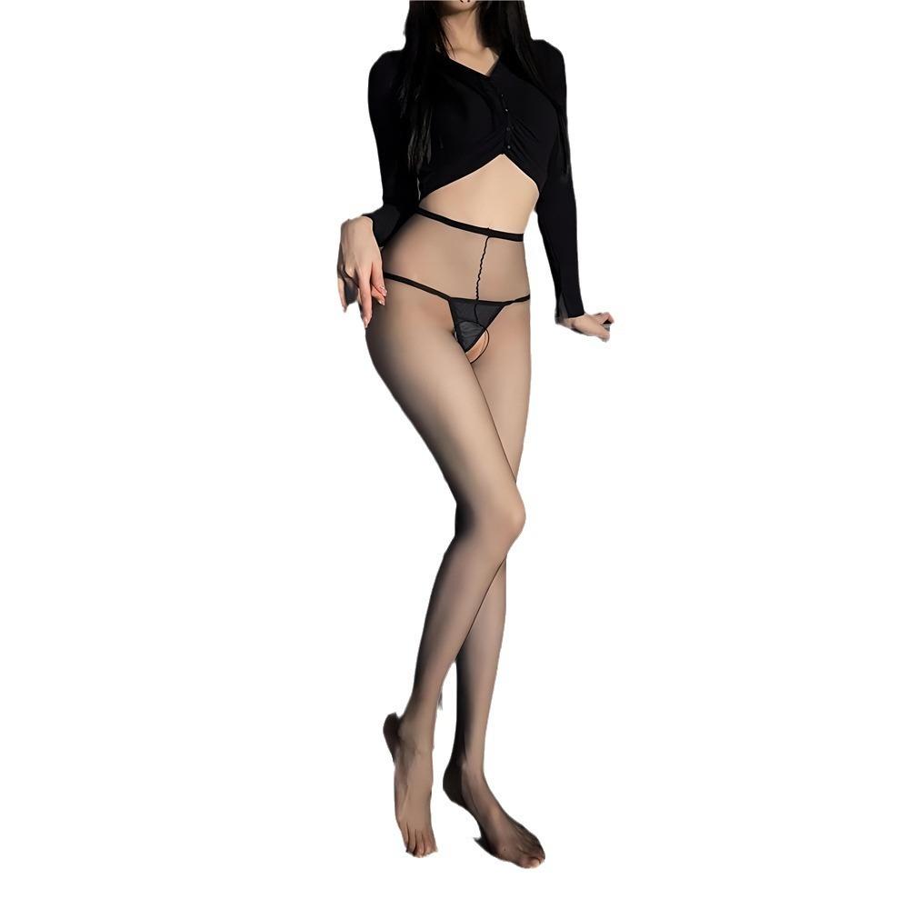 0D Веселые чулки с открытой промежностью Тонкие сексуальные секс-товары Постельные искушения Носки, порванные вручную Флирт Черные шелковые страстные нижнее белье Женщины