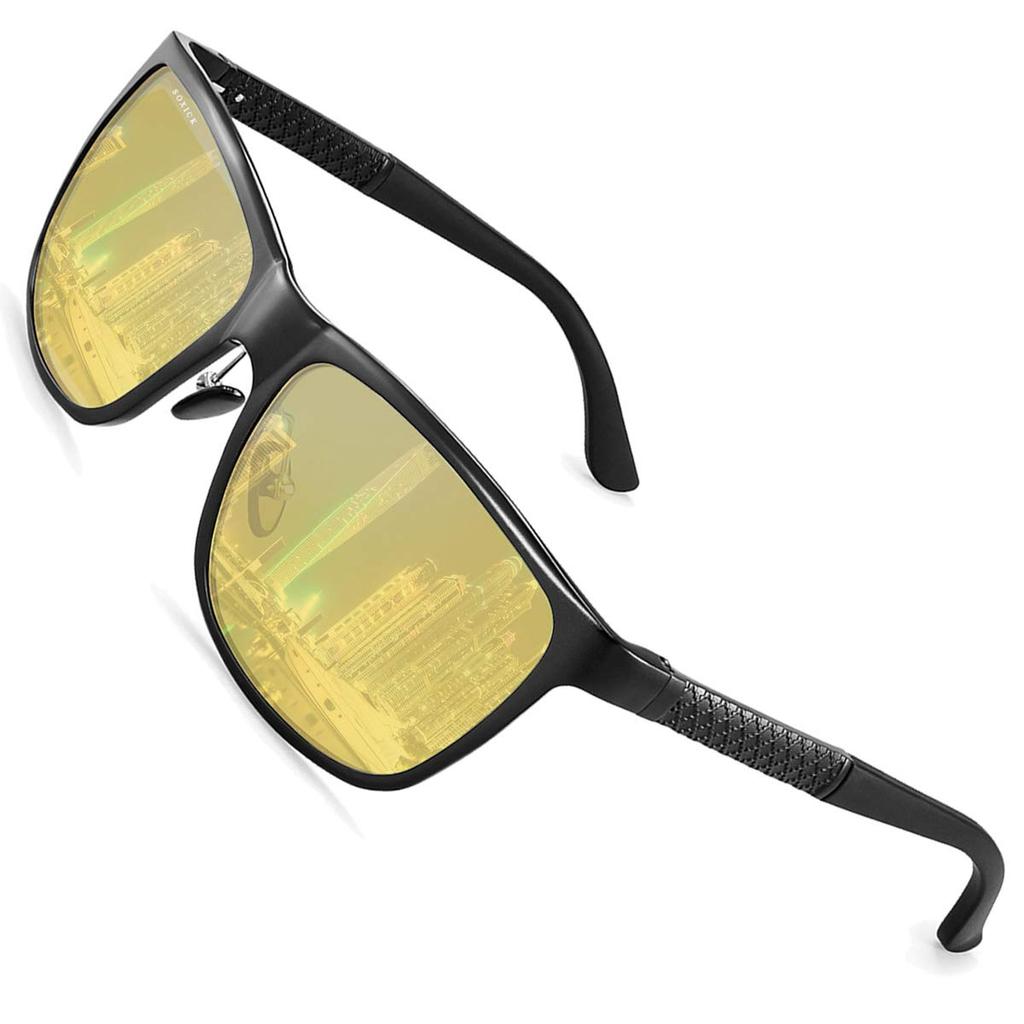 SOXICK Polarized Sunglasses Sports Night Driving Yellow Lenses UV Protection UV400 Lightweight Night Fishing Unisex Black 2 Men's