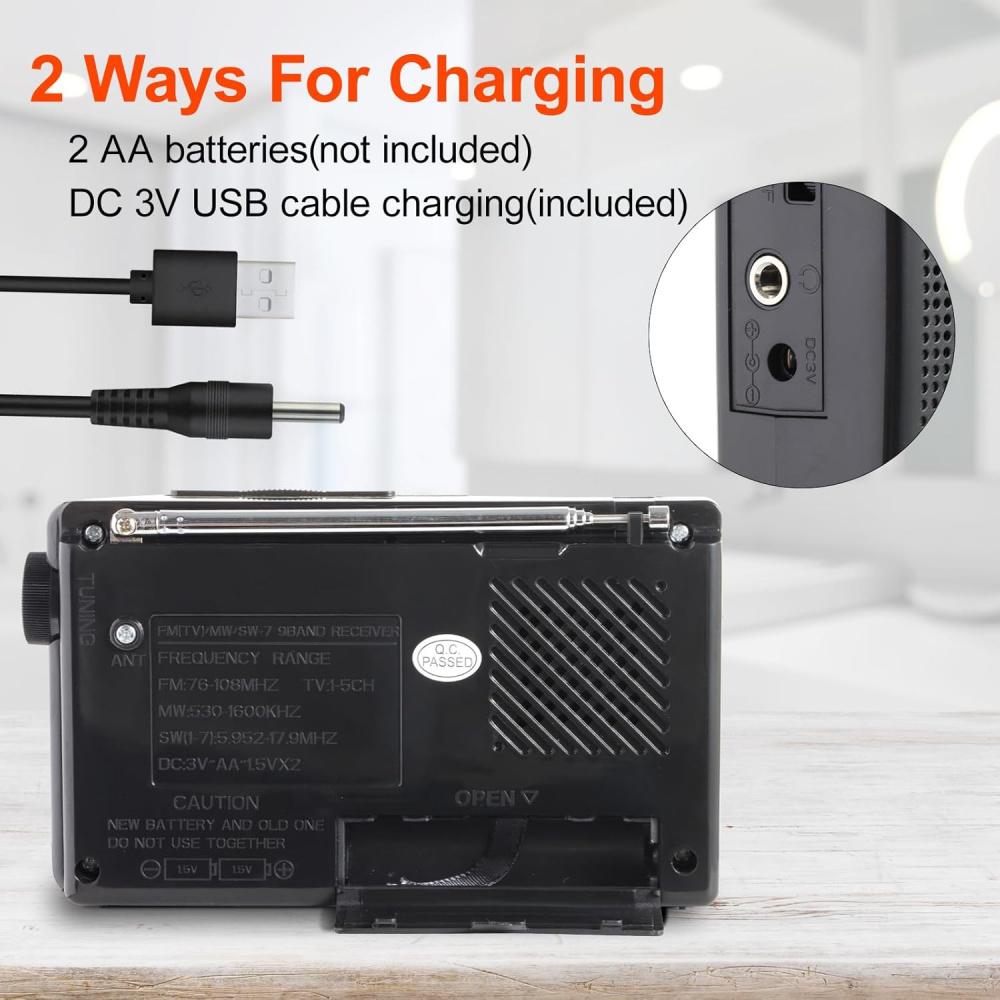[Двойные варианты питания для универсальности]: Оставайтесь всегда под напряжением благодаря двум вариантам зарядки этого транзисторного радиоприемника, работающего от батареек.(батарея не входит в комплект). Независимо от того, работает ли радио на батарейках или подключено к розетке, это портативное AM FM-радио обеспечивает непрерывные развлечения.. Незаменимое портативное AM/FM-радио для использования как дома, так и на улице.