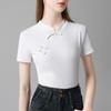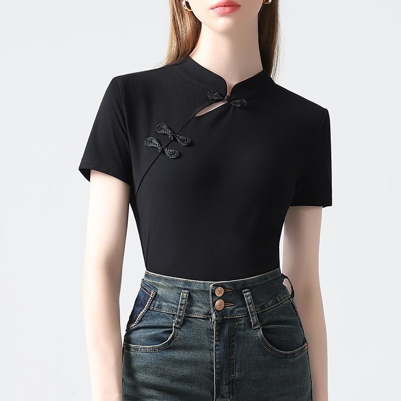 Новый китайский стиль с наклонной планкой и воротником-стойкой, новая женская одежда, футболка с короткими рукавами и воротником-стойкой в китайском стиле для женщин