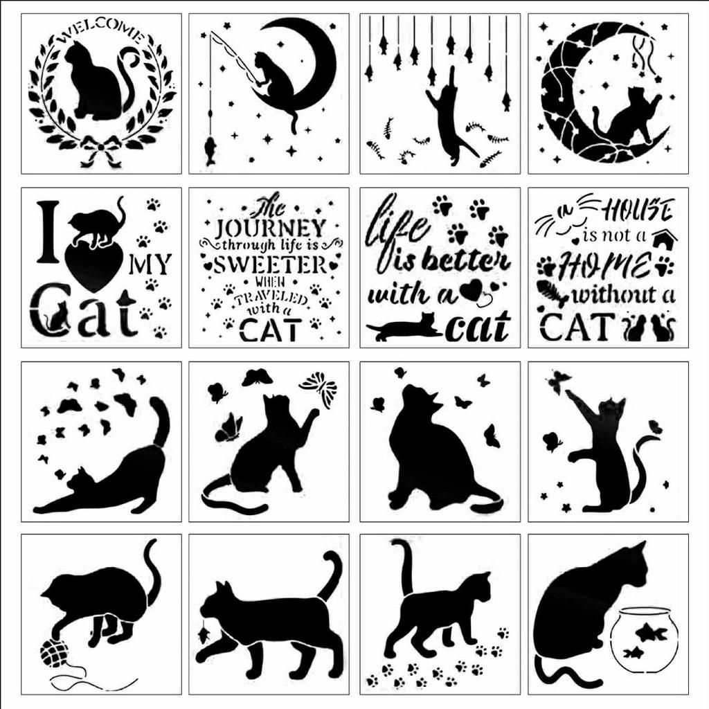 Набор шаблонов Koonafy из 16 трафаретов в форме кошек, панда, кошка, милая тарелка, живопись, канцелярские принадлежности, подарок, сделай сам, дизайн, чертежный трафарет