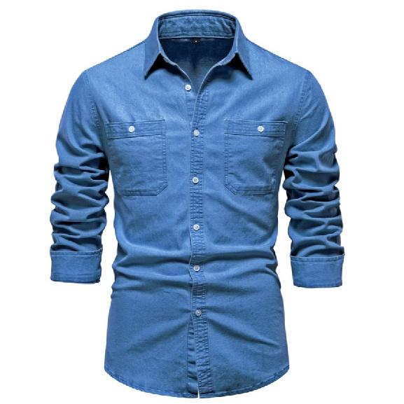 Весна и осень Новая мужская одежда Размер США Джинсовая рубашка Мужская повседневная однотонная мужская рубашка с длинным рукавом