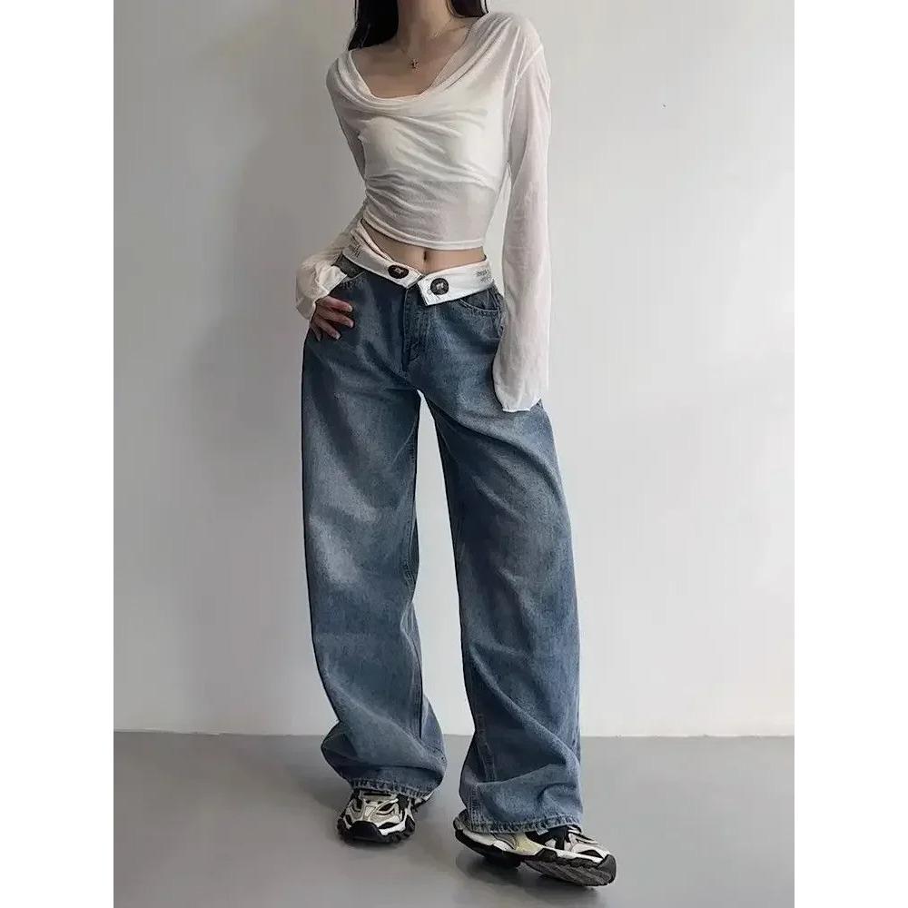 Винтажные джинсы Y2k, женские мешковатые уличные джинсы Kpop Gyaru, широкие синие джинсовые брюки Harajuku, корейские модные джинсы Acubi с высокой талией — купить товар онлайн с бесплатной доставкой до всему миру!