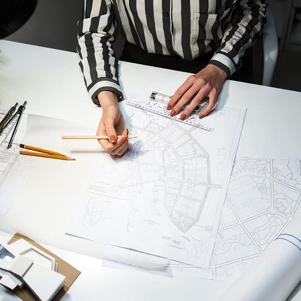 [Можно использовать для самых разных целей] Эту кальку можно использовать для проектирования и черчения в самых разных областях, включая архитектуру, дизайн, дизайн интерьера, ландшафты, каллиграфию, искусство и рукоделие.. Однако из-за своей природы калька легко впитывает влагу, поэтому будьте осторожны при ее хранении в местах, подверженных воздействию ультрафиолетовых лучей или высоких температур и влажности.