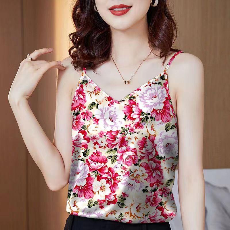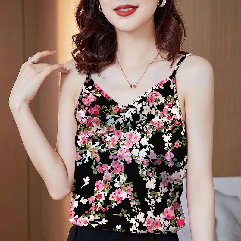 Женская майка-комбинезон с цветочным принтом, летняя, новая, с V-образным вырезом, свободная, тонкая, без рукавов, нижняя часть