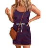Женское летнее платье в полоску без рукавов с завязками на талии, повседневные платья-майки с карманами