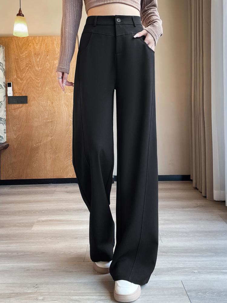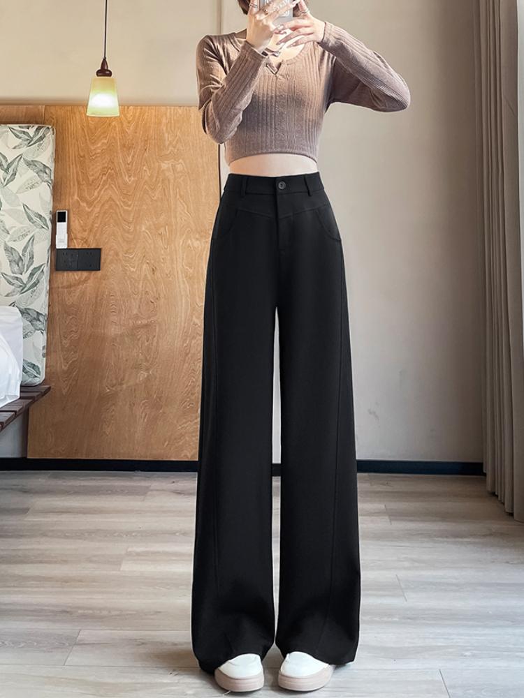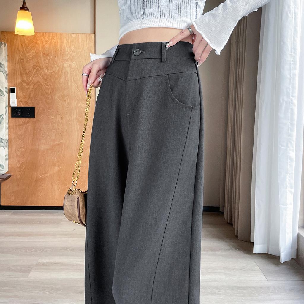 2025 Весна Лето Элегантный Костюм Широкие Брюки Женские Новые Прямые Повседневные Брюки Швабры Узкие Брюки с Высокой Талией Драп Костюм