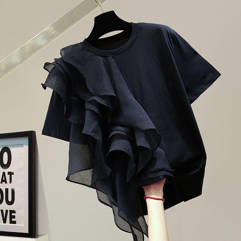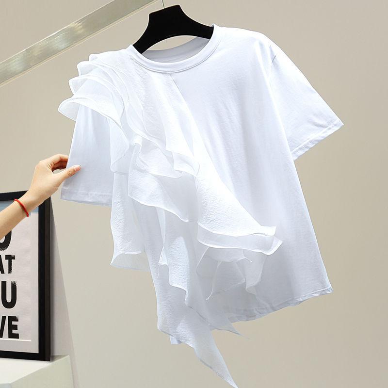 Женская блузка с оборками и строчкой, модная праздничная летняя туника с коротким рукавом, свободная однотонная блуза