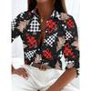 Модные новые женские рубашки с длинным рукавом, универсальные однобортные топы с принтом 3D-рождественской елки, лето-весна, базовые, большие размеры