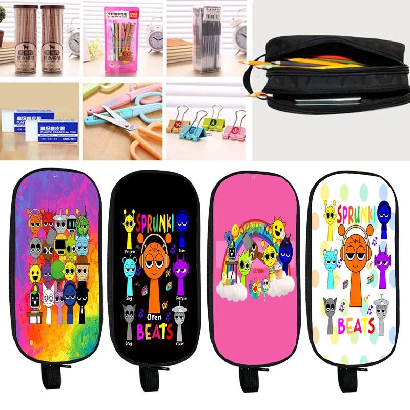 Пенал Sprunki Incredibox для студентов, двухслойный пенал для школьных принадлежностей с игрой в жанре ужасов, канцелярские принадлежности для детей, коробка для ручек