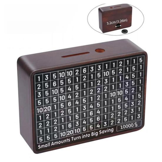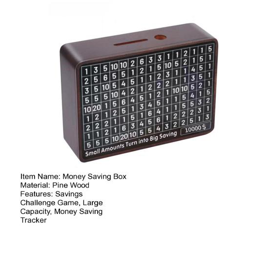 Представляем вам шкатулку для сбережений денег — большое и удобное решение для хранения монет и банкнот.. Изготовленная из натурального массива дерева, эта шкатулка имеет прочную и красивую поверхность с гладкими закругленными краями.. Легко снимайте наличные с помощью прилагаемого пинцета.. Примите участие в испытании по экономии денег с помощью этой коробки, которая поможет вам сократить ненужные расходы и развить полезные привычки сбережений.. Используйте предоставленный маркер, чтобы отслеживать прогресс ваших сбережений, превратив испытание в увлекательную игру.. Наблюдайте, как растут цифры по мере того, как вы экономите больше, и ощущайте чувство выполненного долга.
